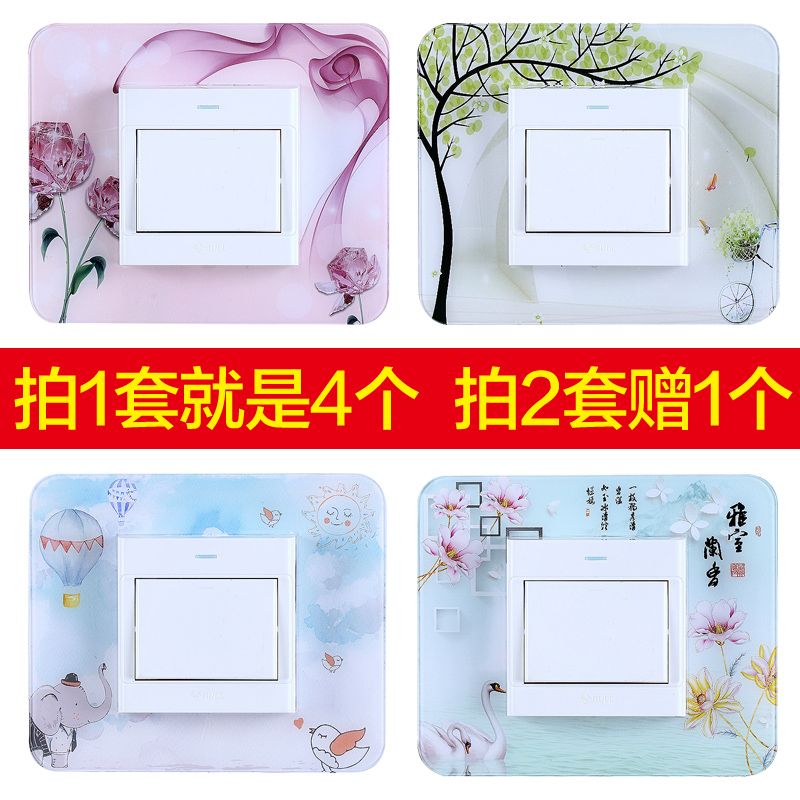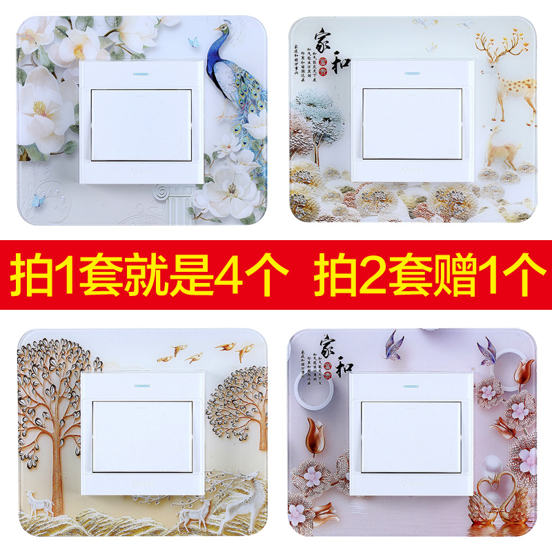 中式亚克力4个装开关贴墙贴免粘现代中式家用开关插座电源保护套