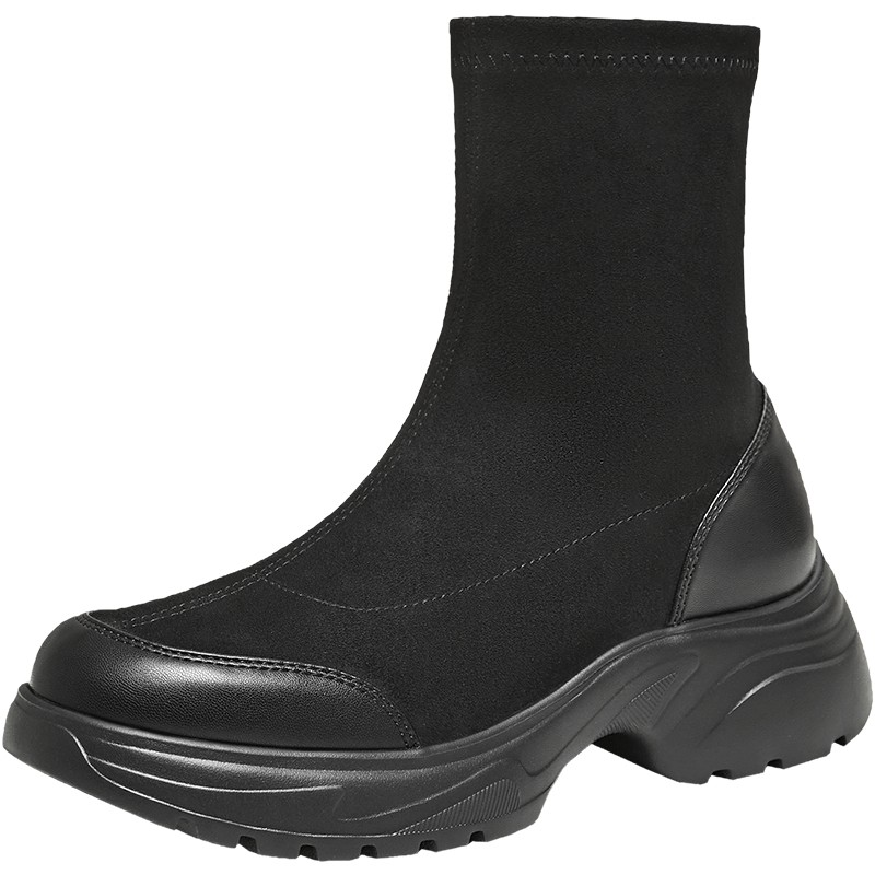 TATA他她靴子女黑色袜靴厚底百搭短靴瘦瘦靴增高弹力靴7PJ60DZ5