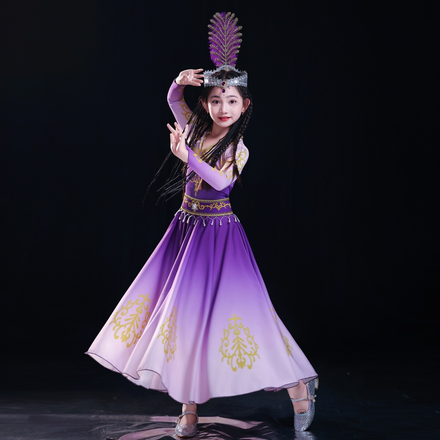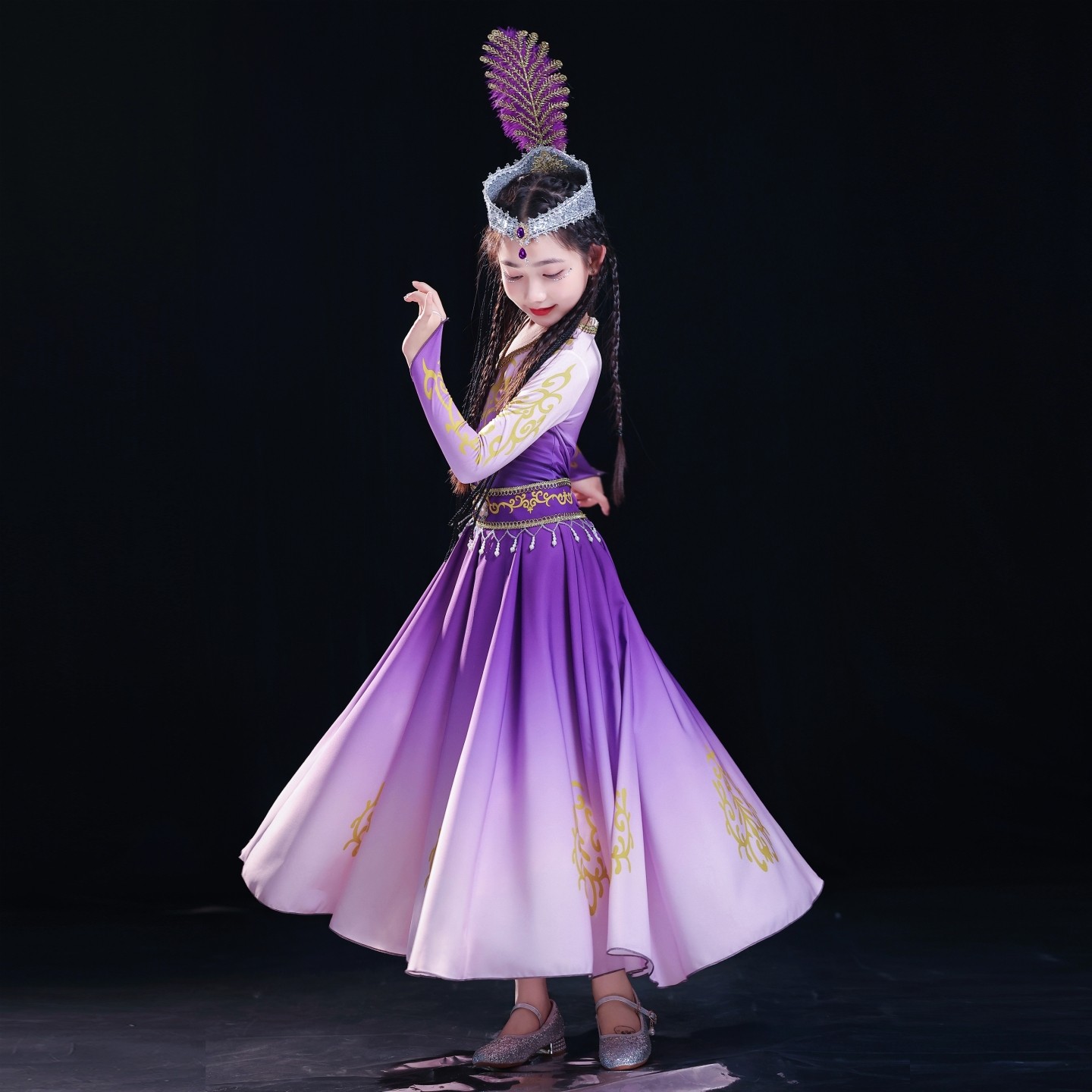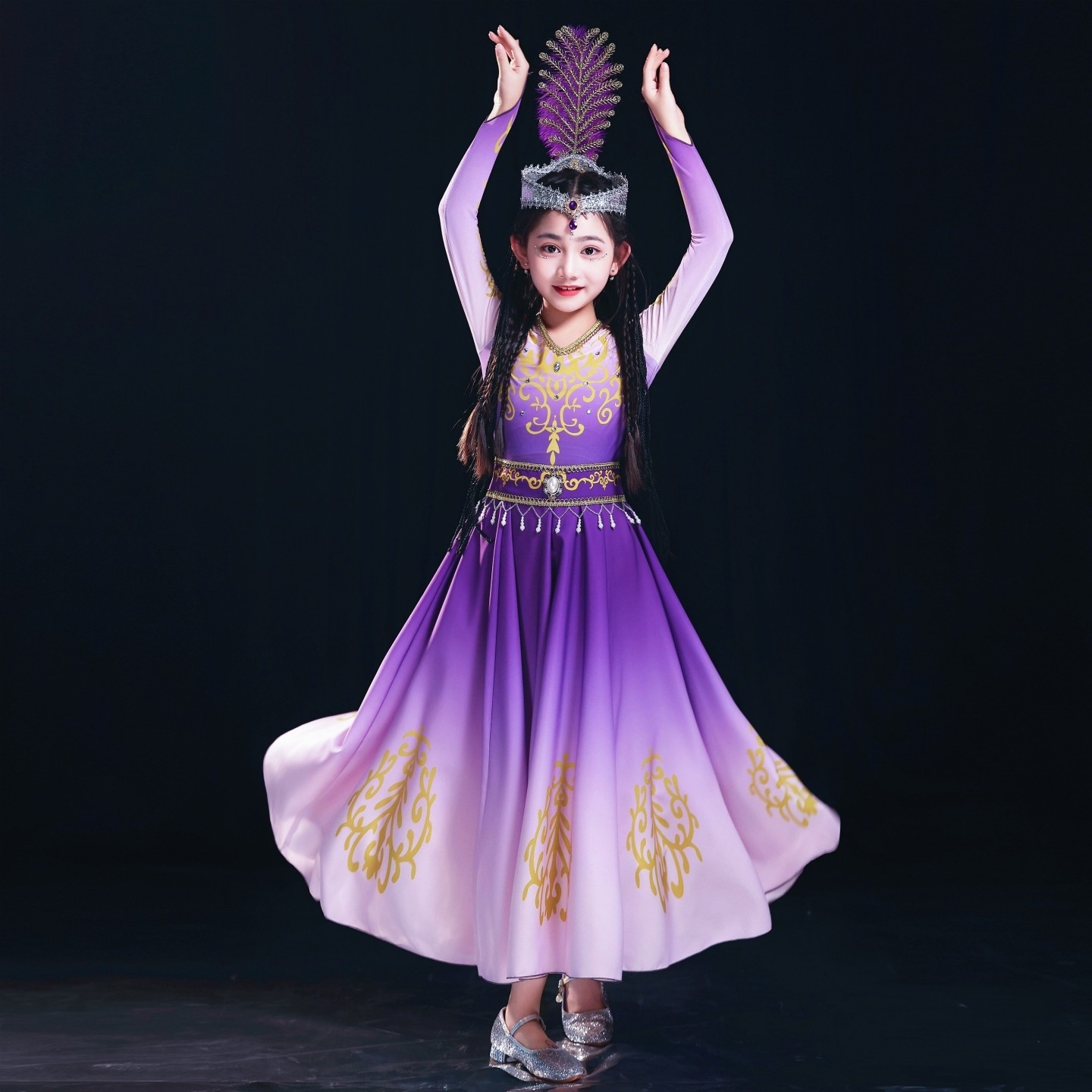 新疆维吾尔族演出服儿童桃李杯小小古丽舞蹈服少数民族维族表演服
