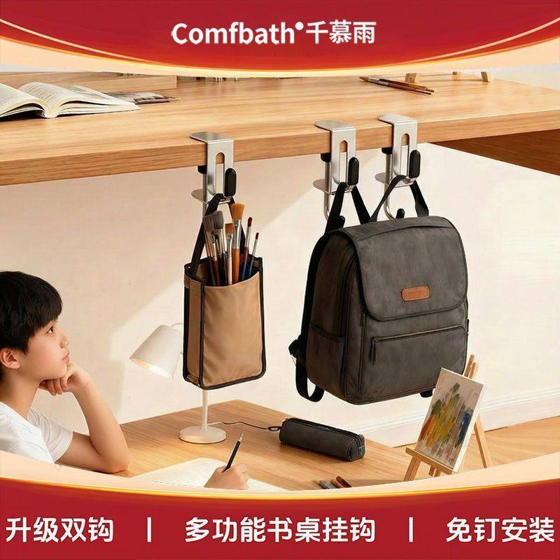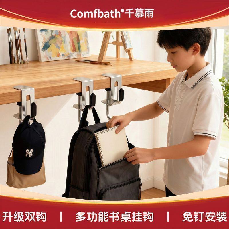 千慕雨浴室挂衣钩免打孔挂钩学生课桌挂钩办公桌多功能收纳置物钩