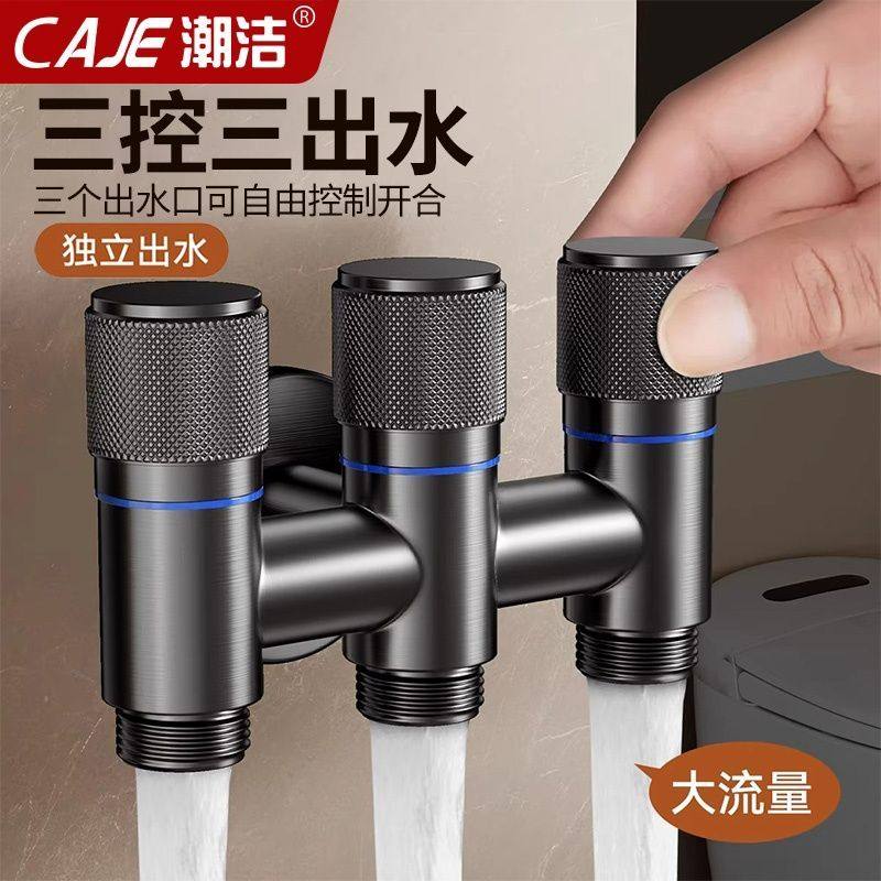 潮洁厨房水龙头一进三出角阀三通接头黄铜一分三水管多功能分流器