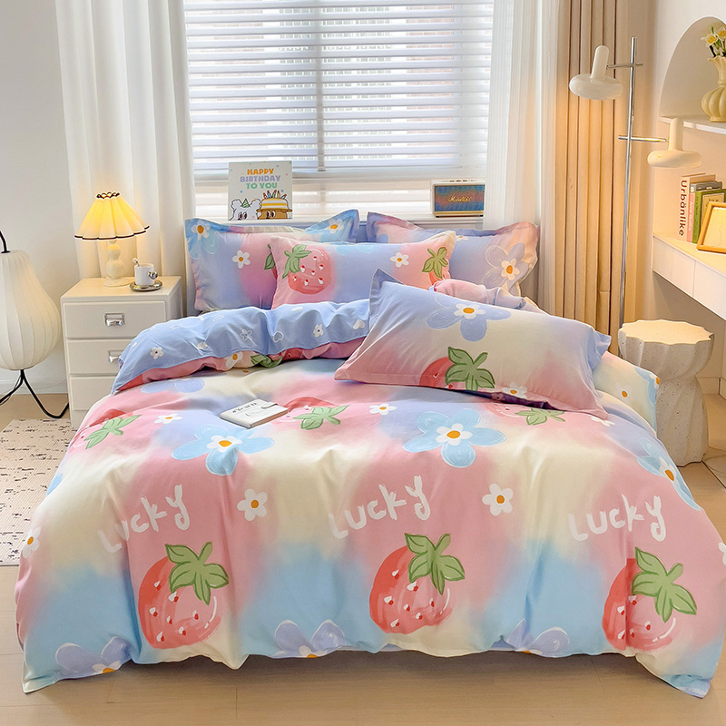1亲肤棉四件套三件套学生宿舍床上用品1.8单双人床单被套被罩化纤