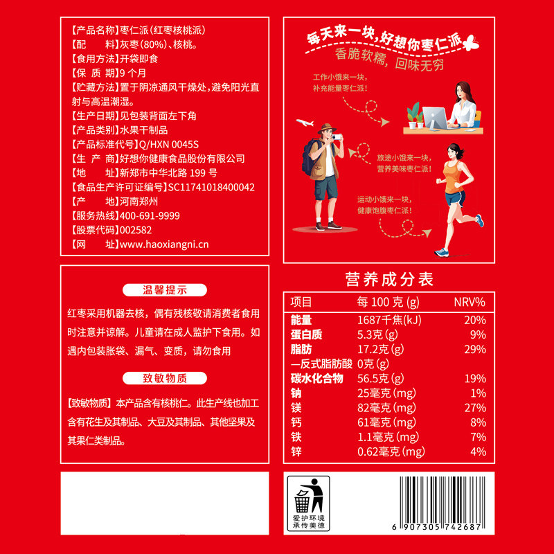 好想你missyou枣仁派168g袋核心派枣夹核桃新疆红枣蜜饯