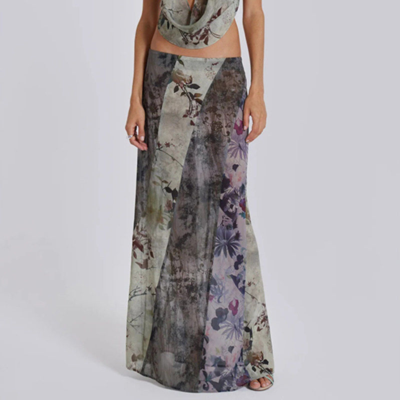 ROCKMORE【枯藤原林】复古辣妹vintage半身裙女森系植物印花长裙