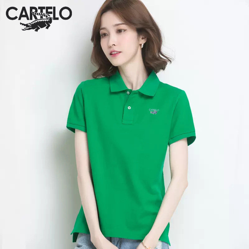 卡帝乐鳄鱼POLO衫短袖t恤女夏季纯棉宽松薄款运动V领休闲上衣装