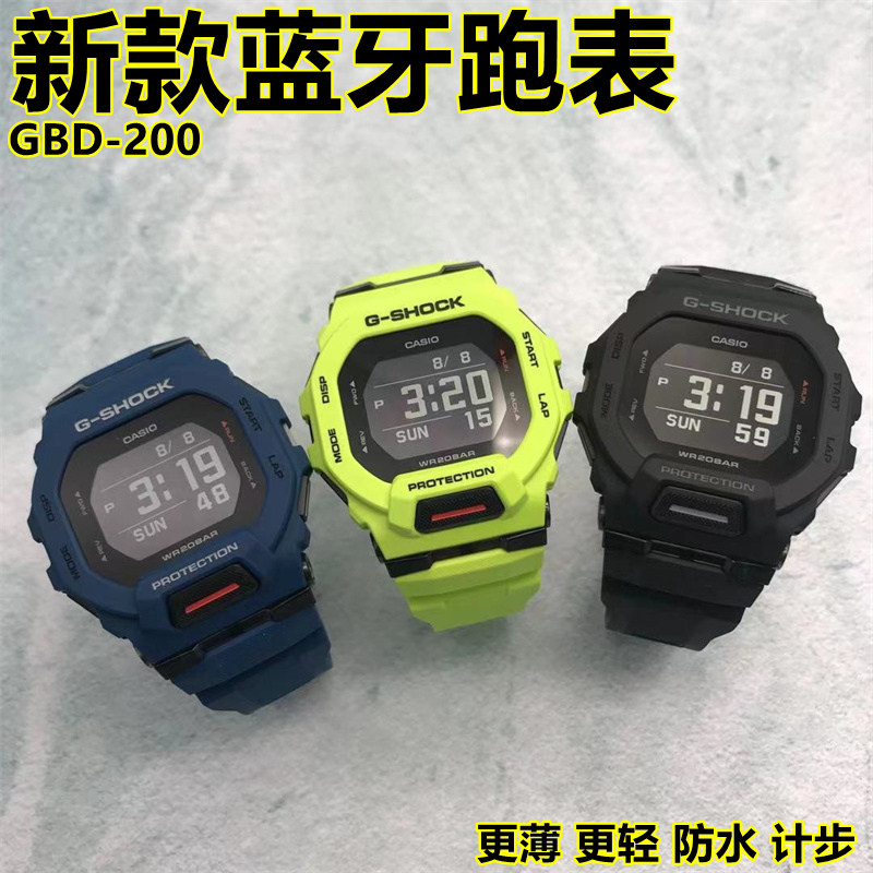 卡西欧GBD200 GSHOCK小方块大黄蜂蓝牙跑步运动配速手表男GBD-200