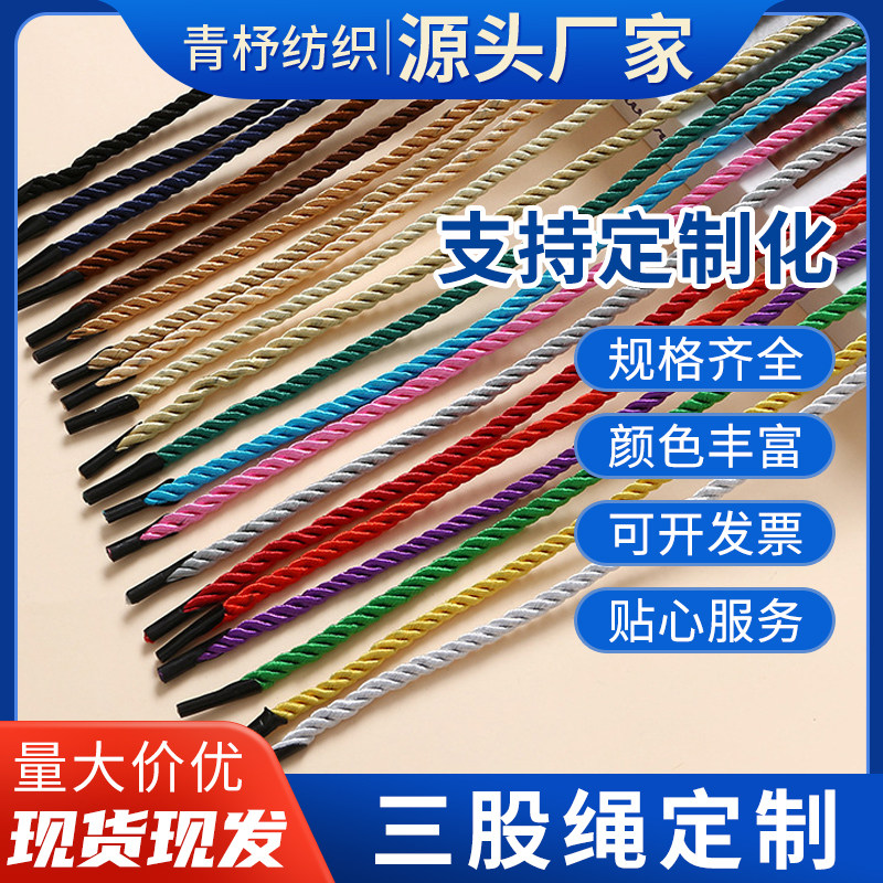 三股绳手提绳子礼品盒拎绳丙纶尼龙包装袋捆扎绳蓝粉绿黄红咖色
