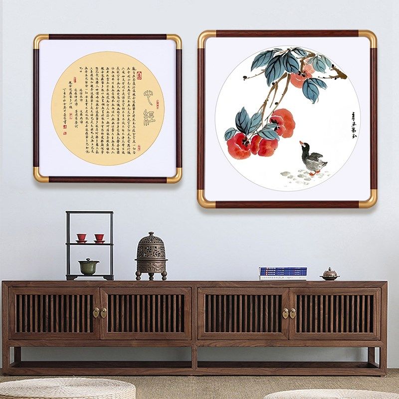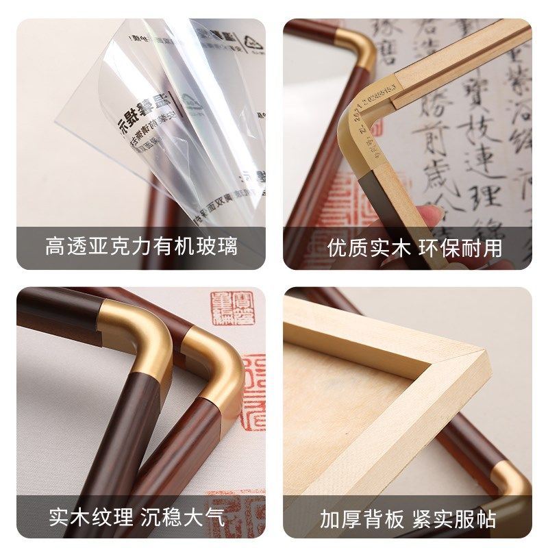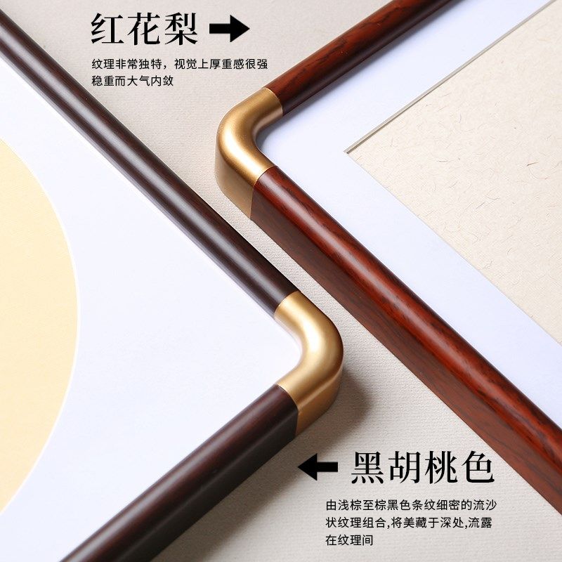 空白宣纸卡纸装裱新中式仿铜圆角画框实木框装裱镂空卡纸挂墙相框
