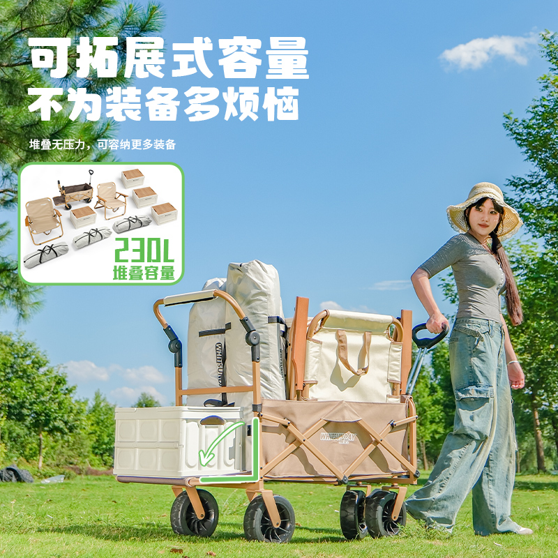 疆屿户外露营手推车儿童可躺折叠营地车野餐野营车摆摊大号旅行车