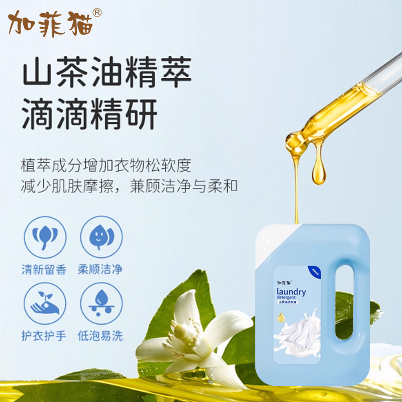 加菲猫宝宝山茶油洗衣液 儿童衣物清洁尿布柔顺手洗幼儿椰油皂液