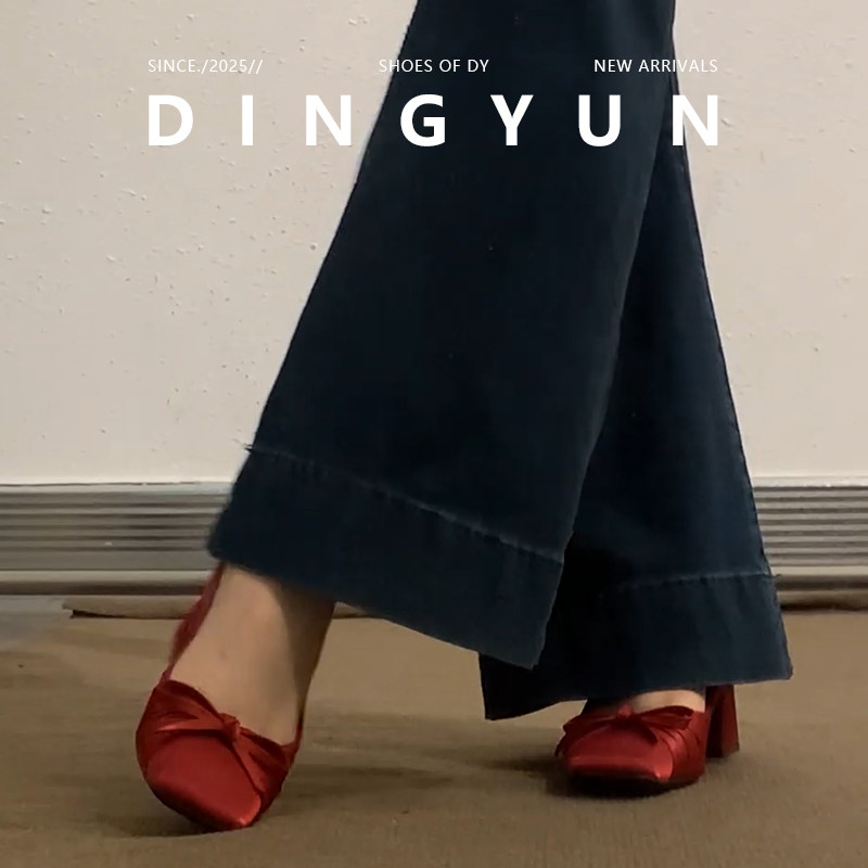 羊皮版dingyun丁允高跟鞋红色婚鞋方头粗跟单鞋法式伴娘鞋不累脚