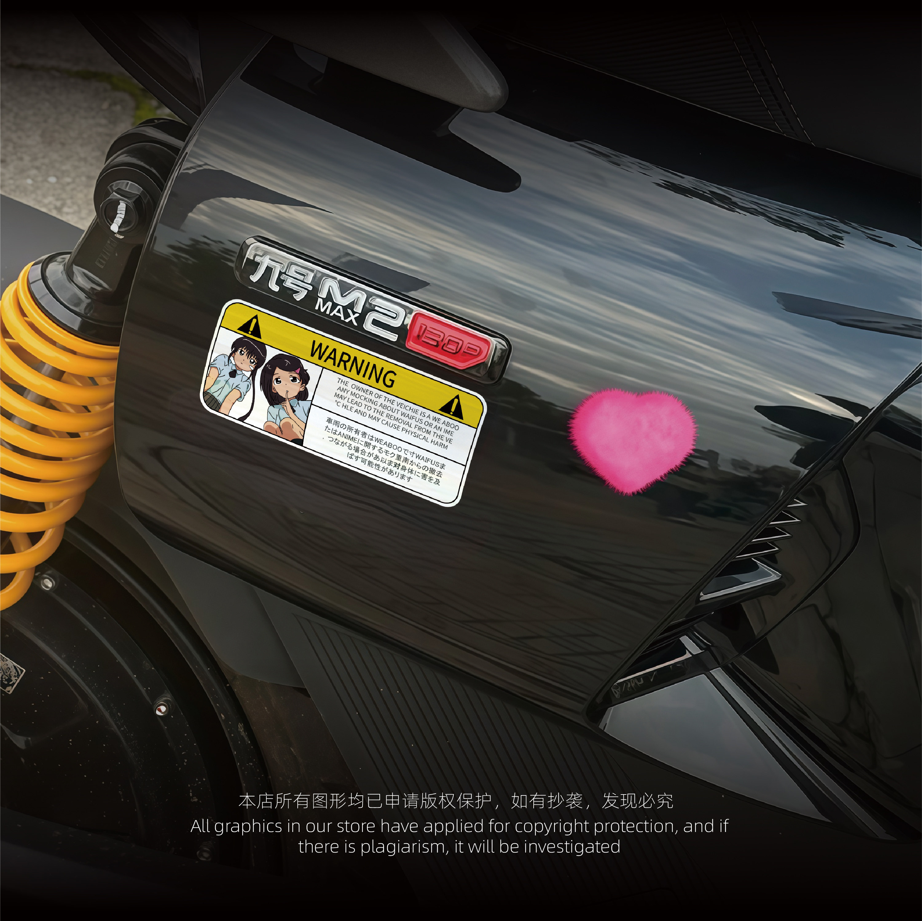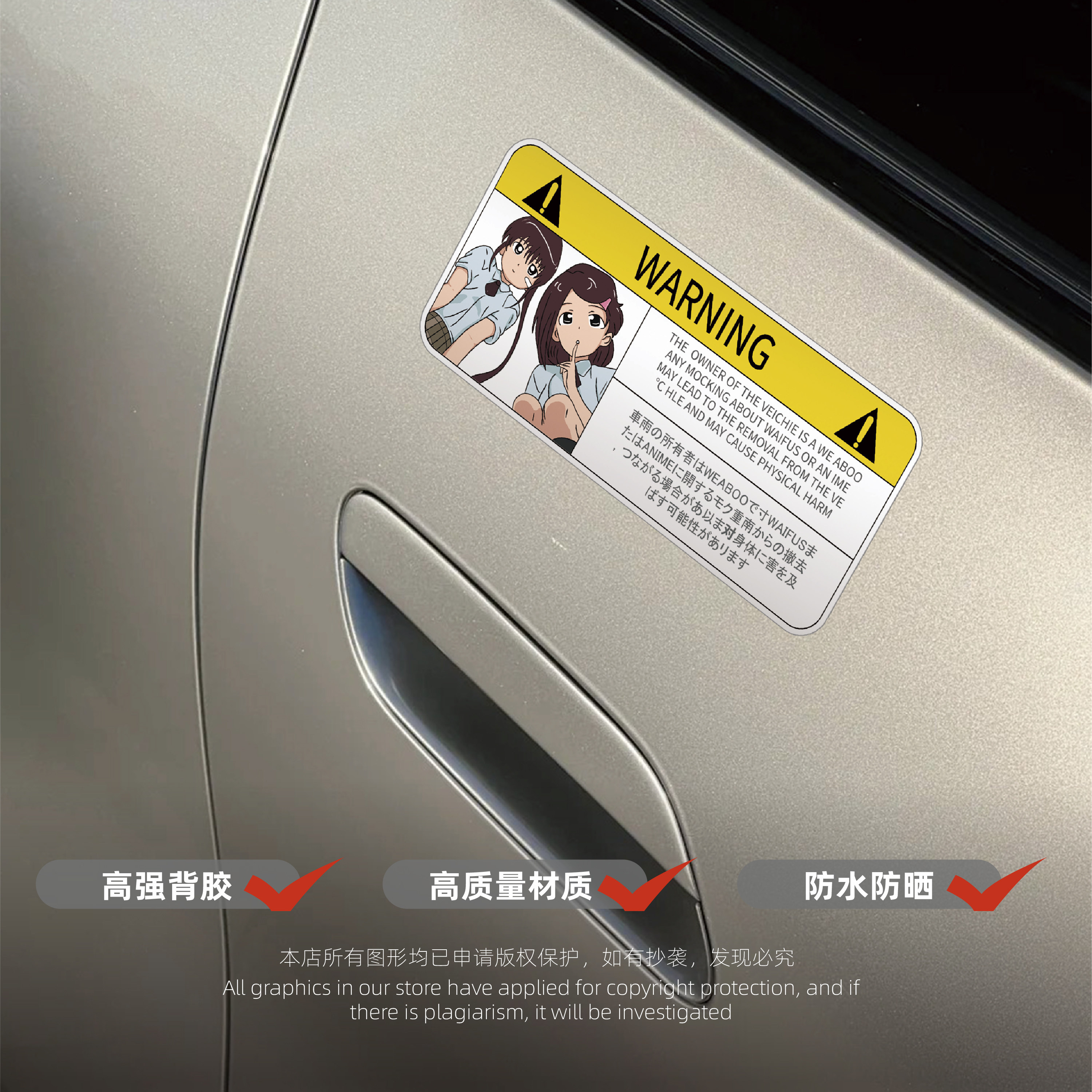 JDM二次元少女警告英文贴纸摩托电动车身装饰遮挡划痕玻璃反光贴