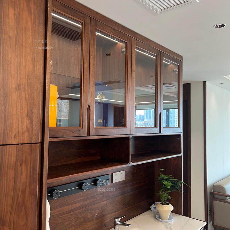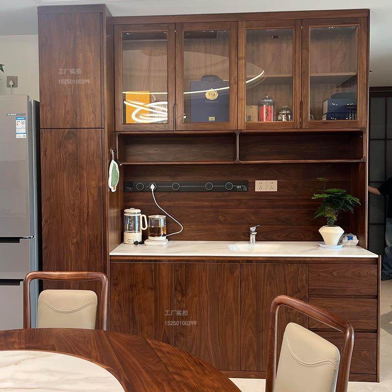 全屋定制北美黑胡桃木餐边柜靠墙一体实木岩板高酒柜收纳洗手台柜
