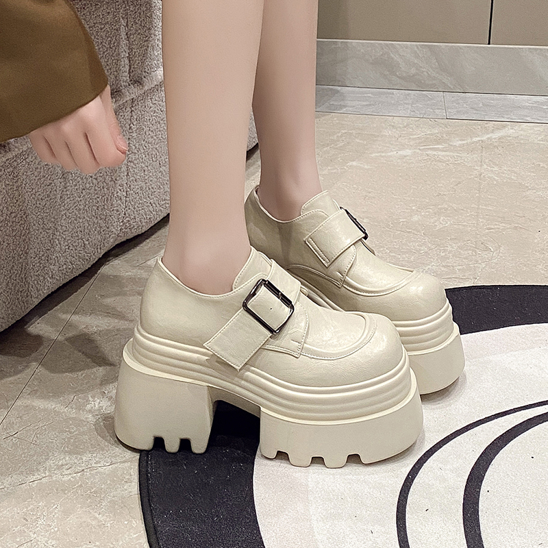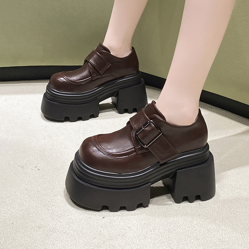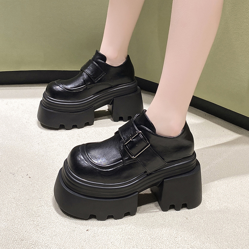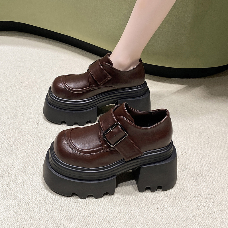 2025新款春季单鞋厚底乐福鞋女英伦风粗跟增高小个子复古小皮鞋女
