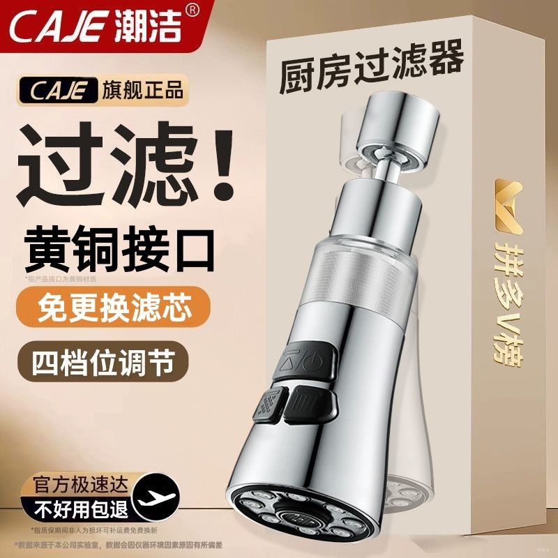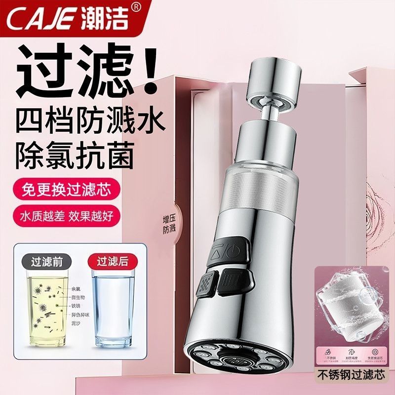潮洁厨房水龙头延伸器防溅水神器万向通用接头过滤水嘴增压防溅头