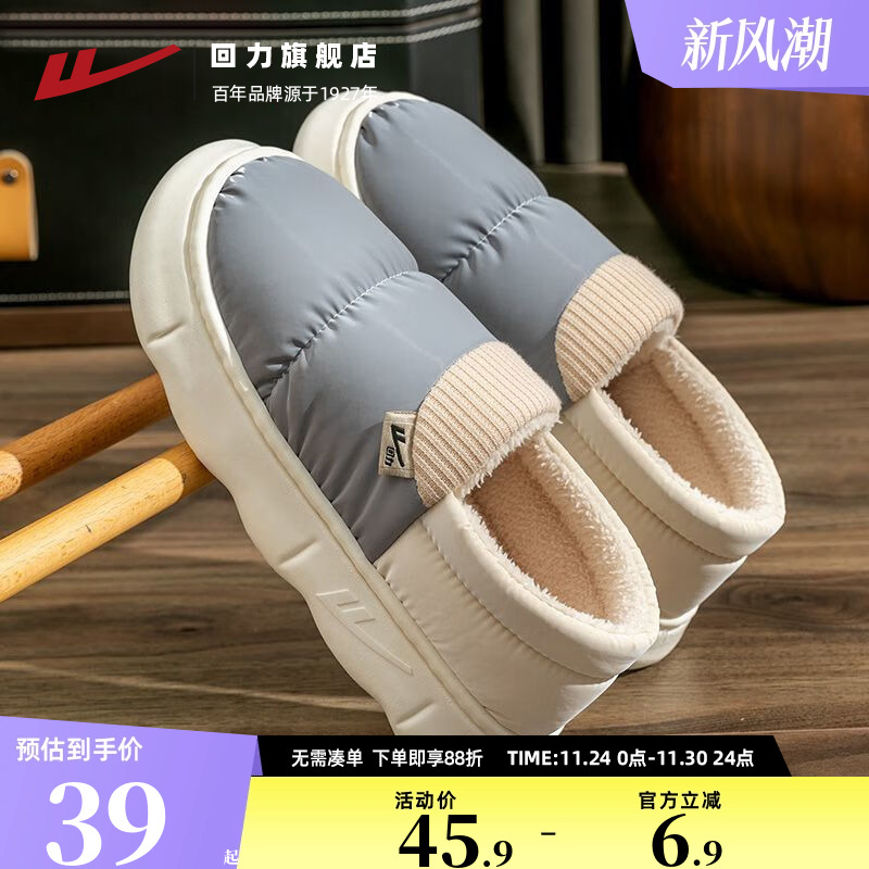 回力棉鞋男冬季男士拖鞋室内居家加厚包跟棉拖鞋冬天拖鞋保暖男鞋