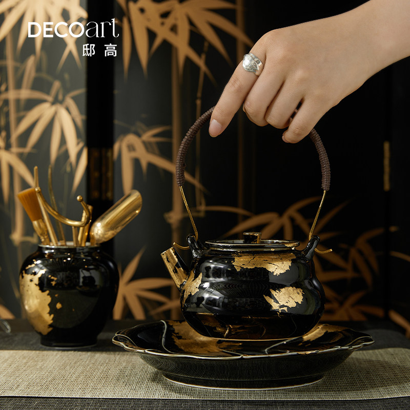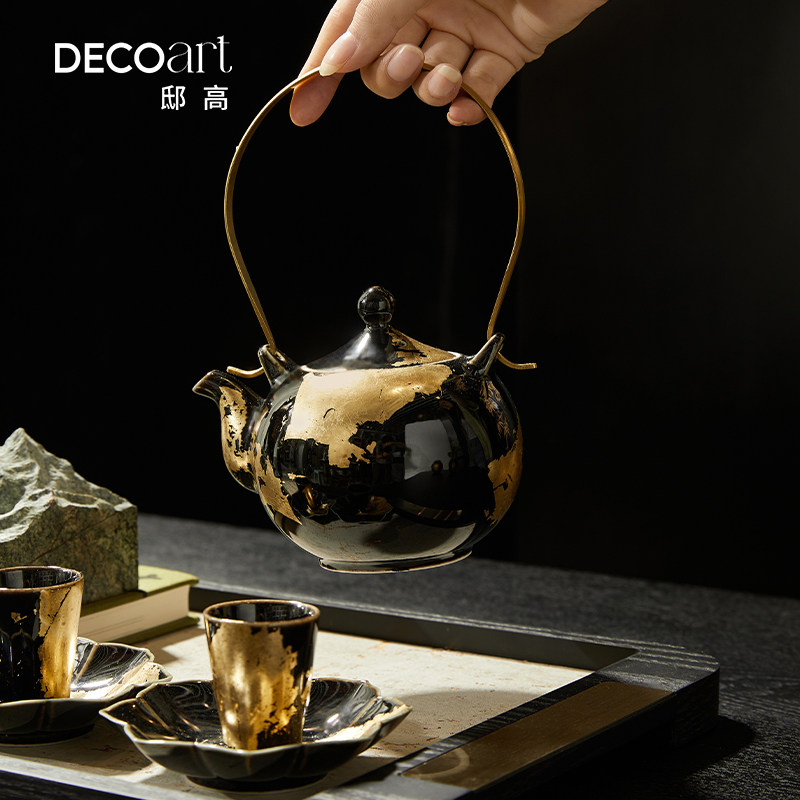 古典家具东方美学中国风宫廷风摆件贴金远古壶茶室茶桌装饰品布置
