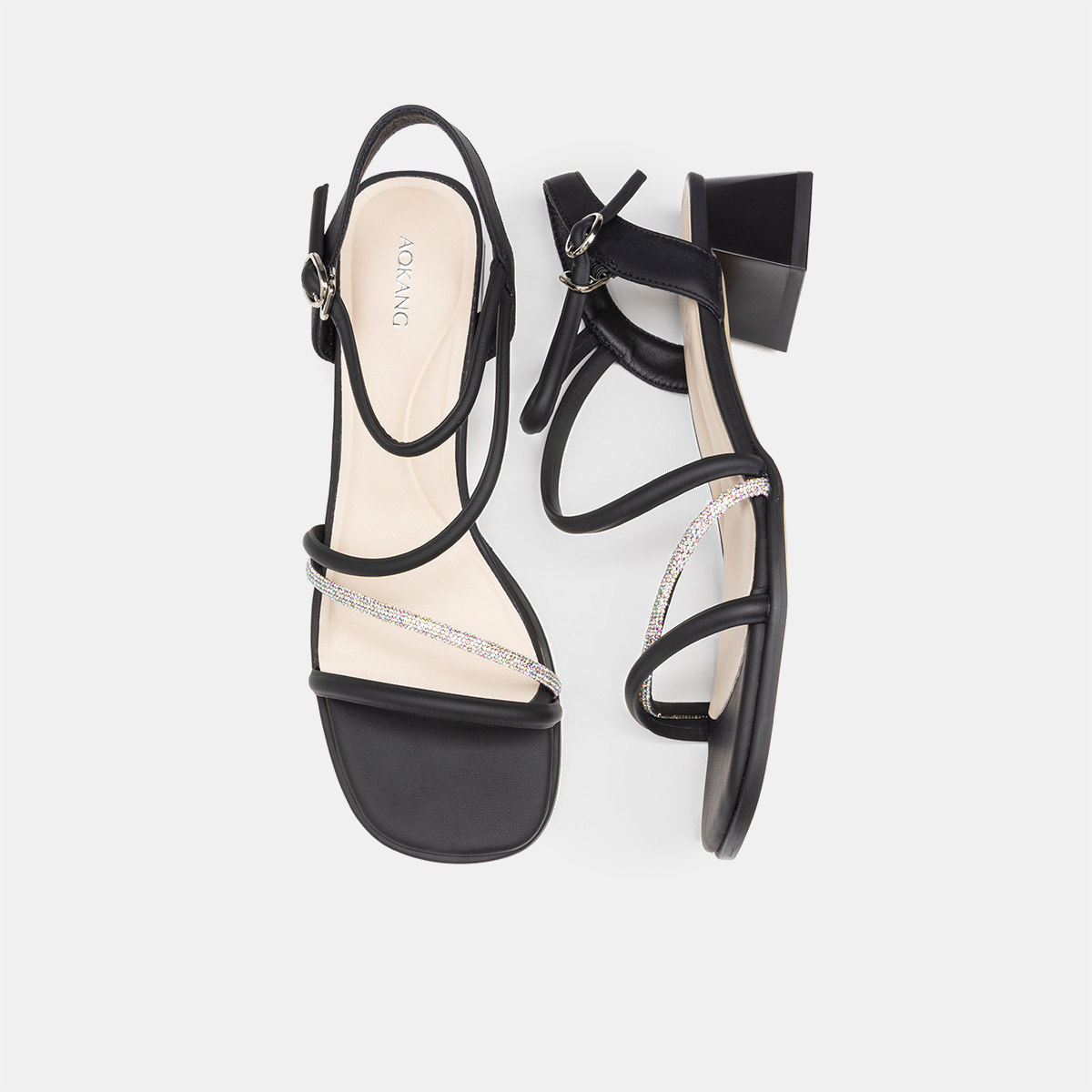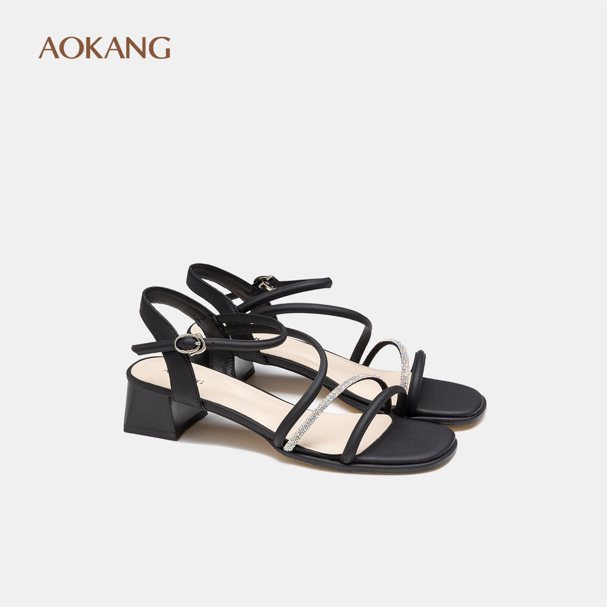 奥康 女鞋2025夏季凉鞋时尚一字带配裙约会通勤OL粗跟凉拖
