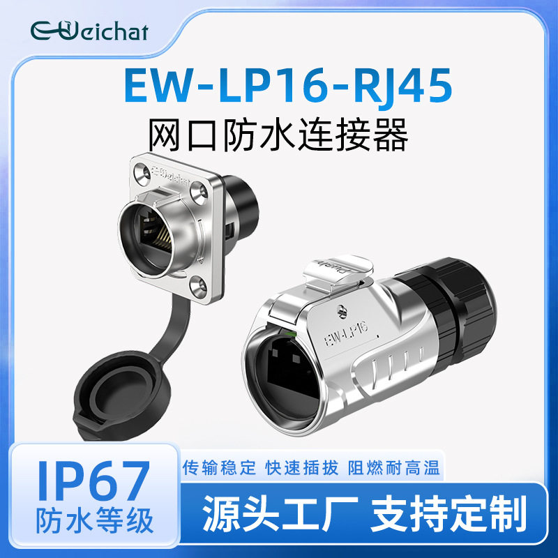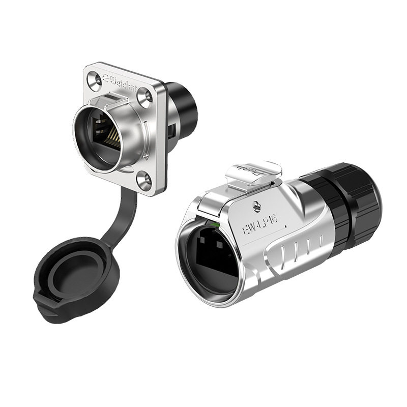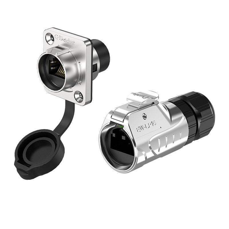 rj45防水连接器网线插座双孔四孔安装金属圆形LP16工业网口连接器