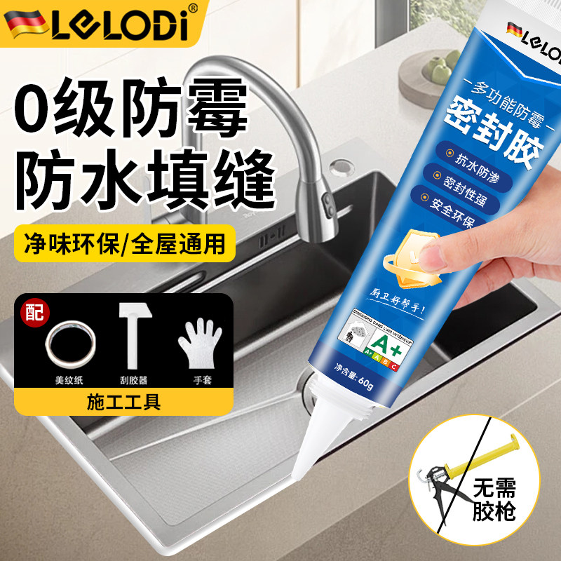 LELODI密封胶防水防霉厨卫面盆底部收边美容胶透明白色强力胶补漏