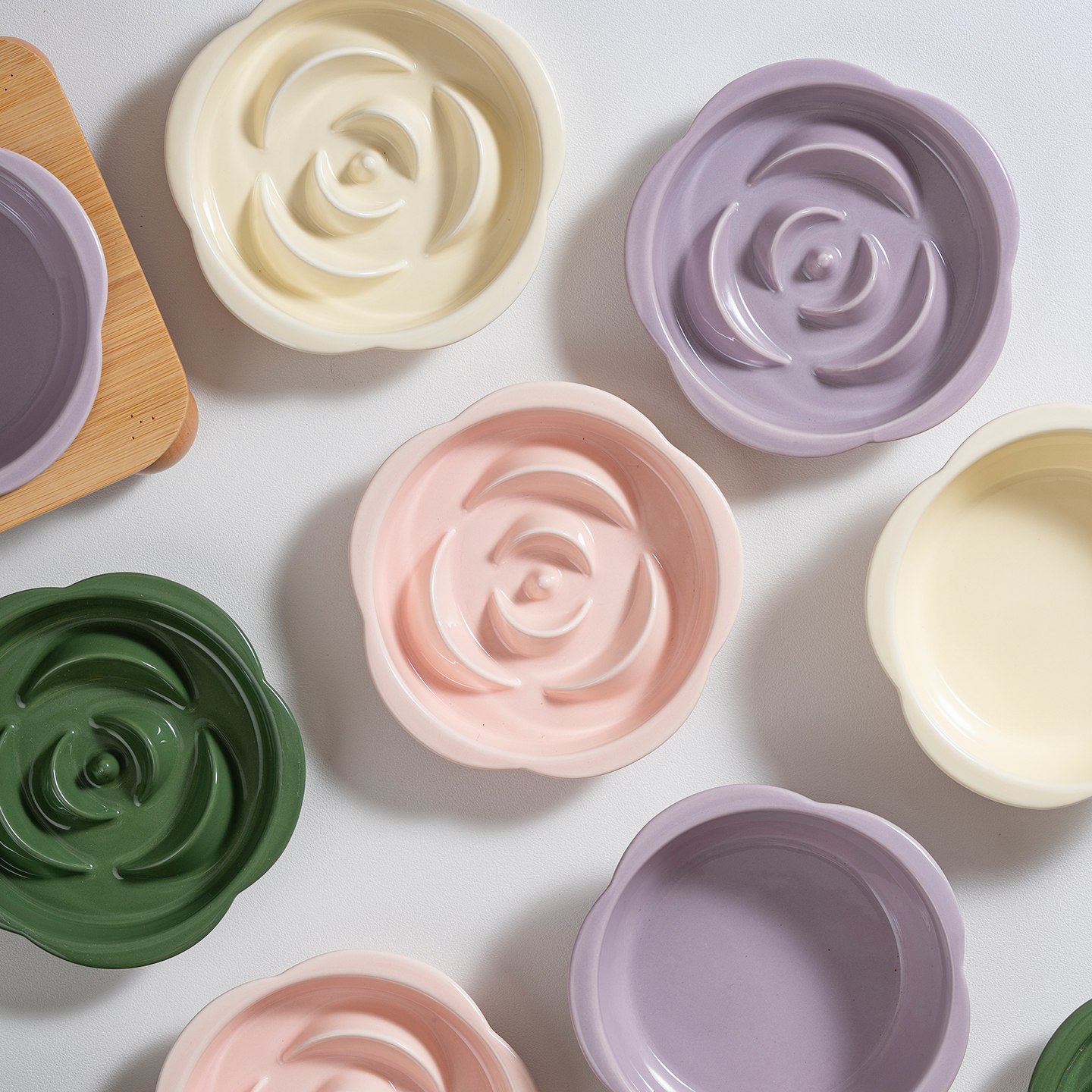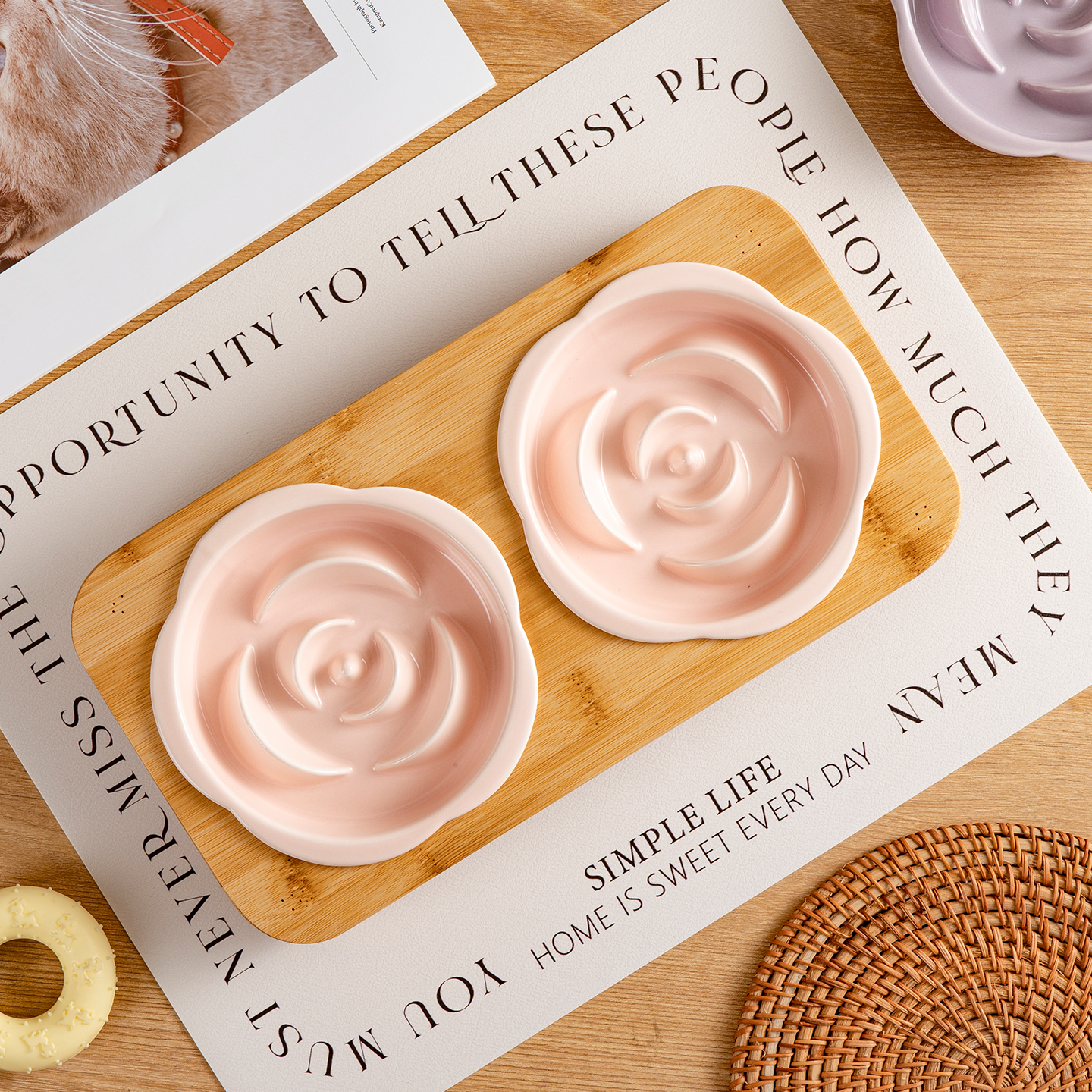宠物用品陶瓷猫狗碗猫咪食盆慢食碗黑下巴日韩猫碗带架