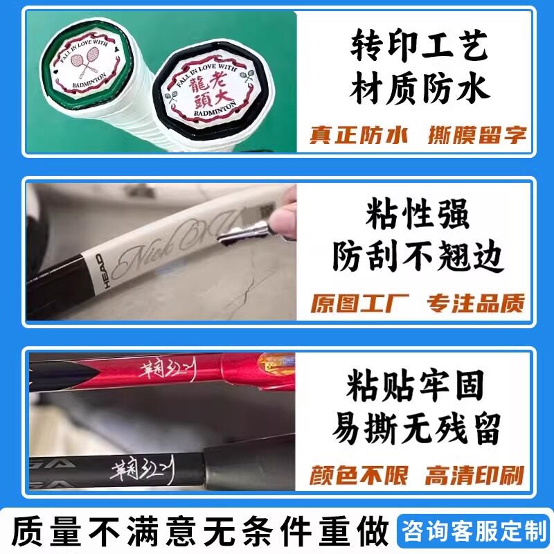 匹克球拍uv转印贴纸定制羽毛球拍图案diy透明不干胶设计网球拍个性装饰水晶标贴画立体签名防水金属标签打印