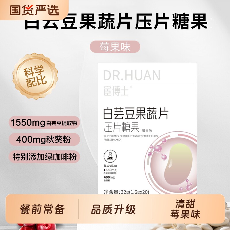 宦博士白芸豆果蔬餐前片32g/盒秋葵粉山竹压片糖果小包装蓝莓咀嚼