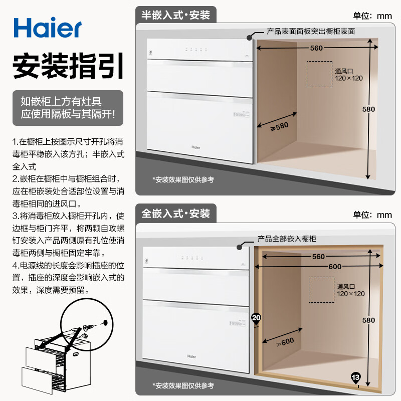 海尔小红花消毒柜嵌入式家用消毒碗柜厨房AI灭菌舱烘干一体EB130B