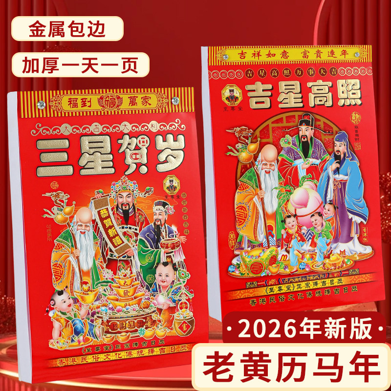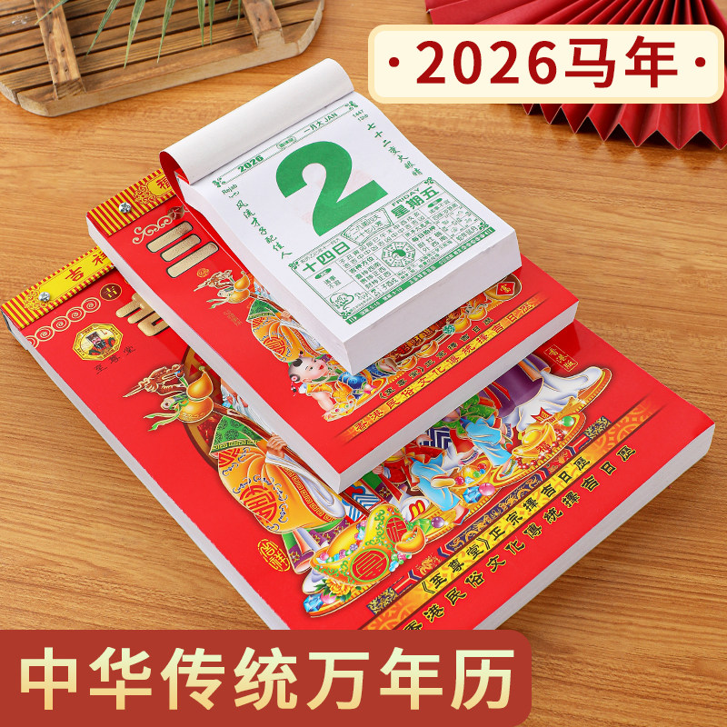 日历2026年新款老黄历马年手撕一天一页老式大号挂历黄道吉日台历