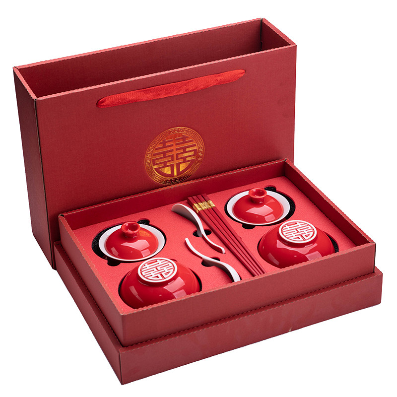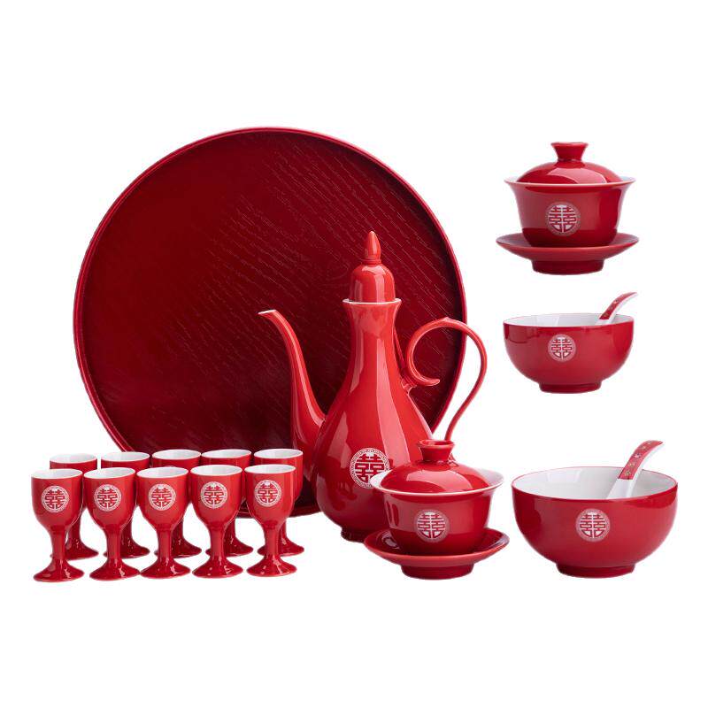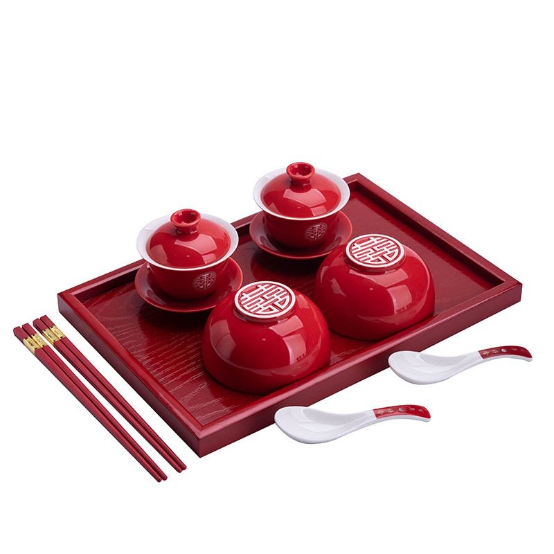 敬茶杯子喜碗结婚礼喜事红色改口盖碗茶具对碗筷套装陪嫁用品酒具