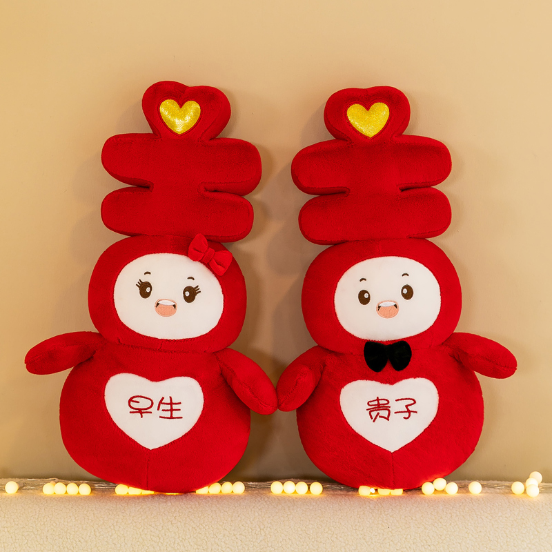 压床娃娃一对结婚压床抱枕婚庆用品婚房布置双喜字公仔新婚礼物
