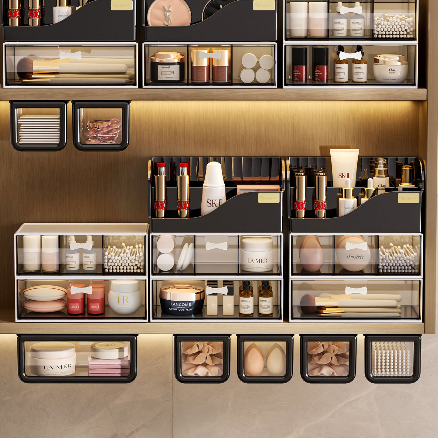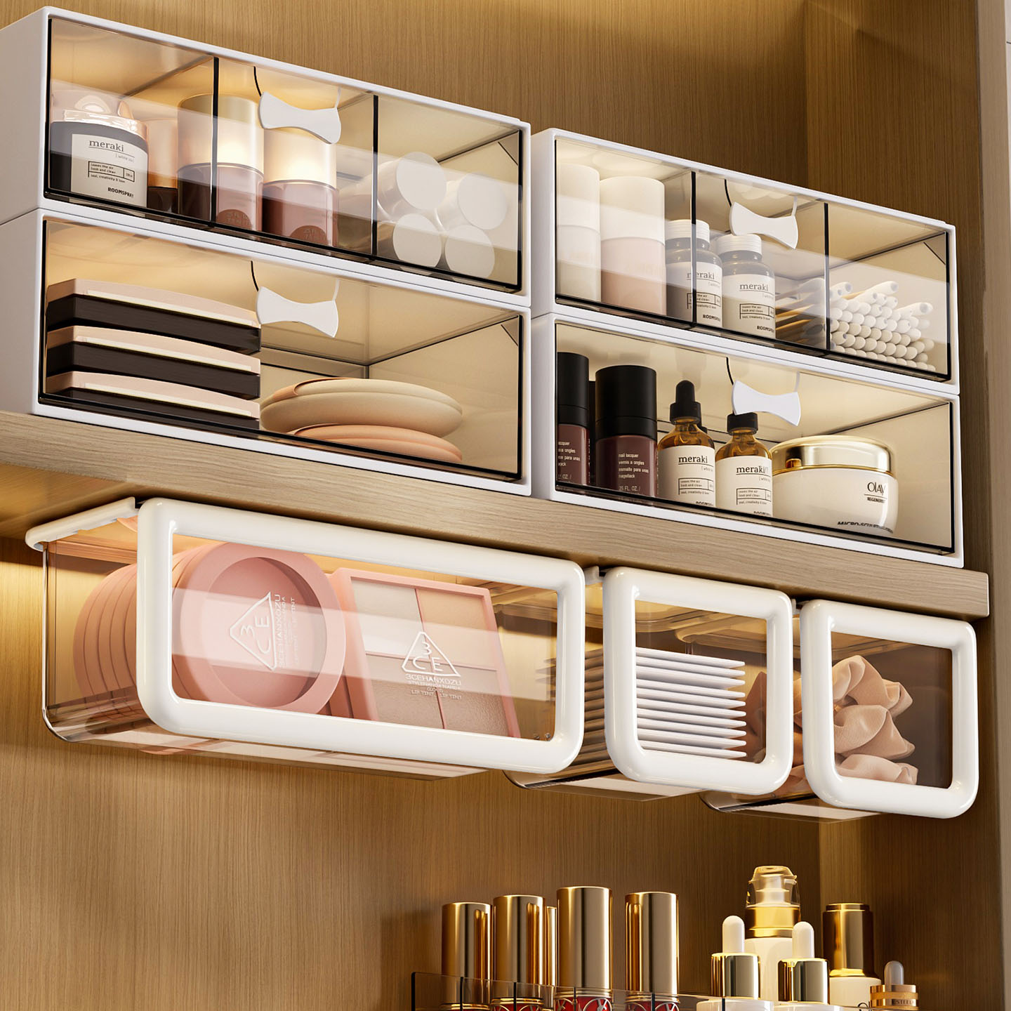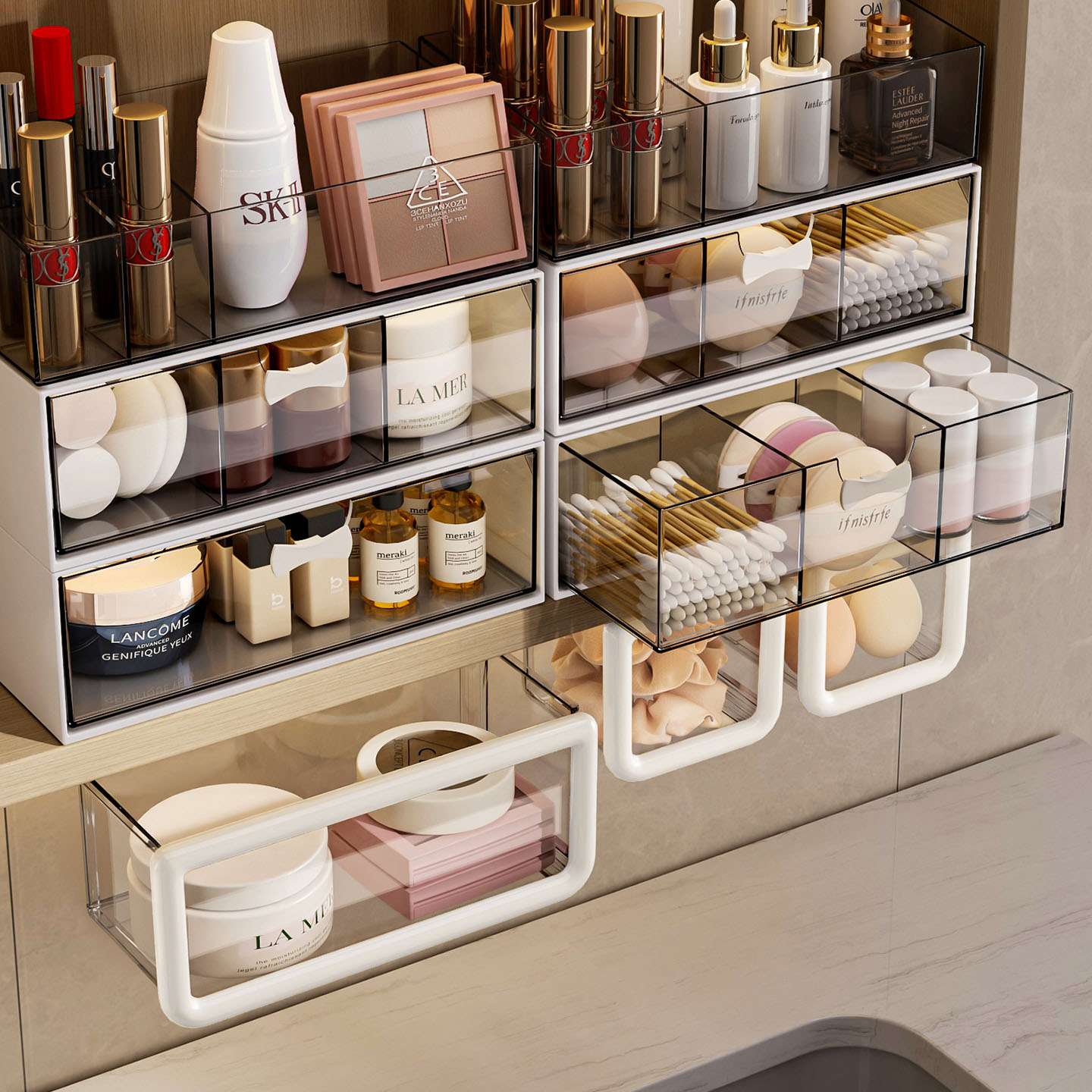 镜柜下抽屉式收纳盒卫生间化妆品置物架卸妆棉口红棉签壁挂整理盒