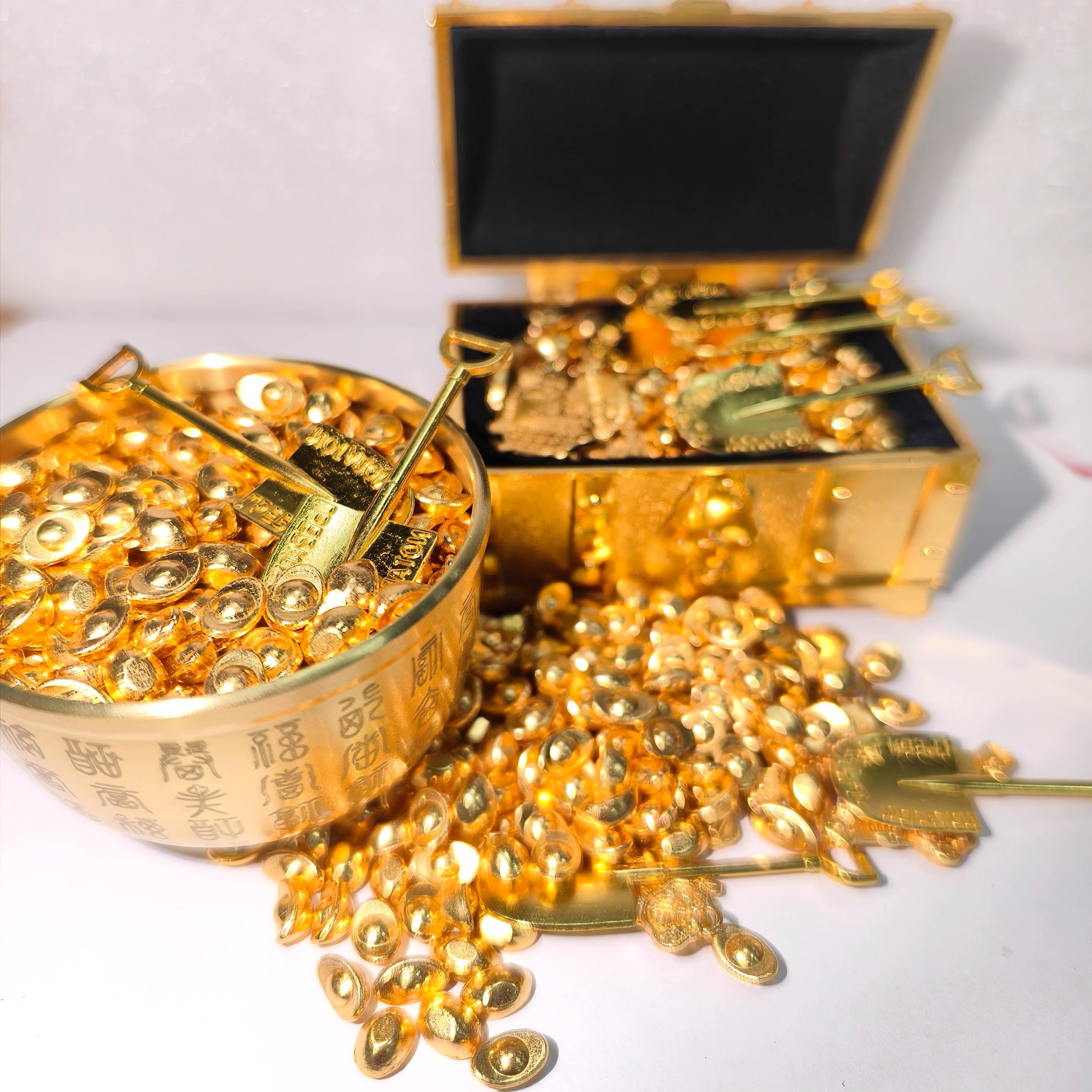 沙金金色小金砖元宝喜庆百宝箱收纳首饰盒金属订婚装饰摆件礼物