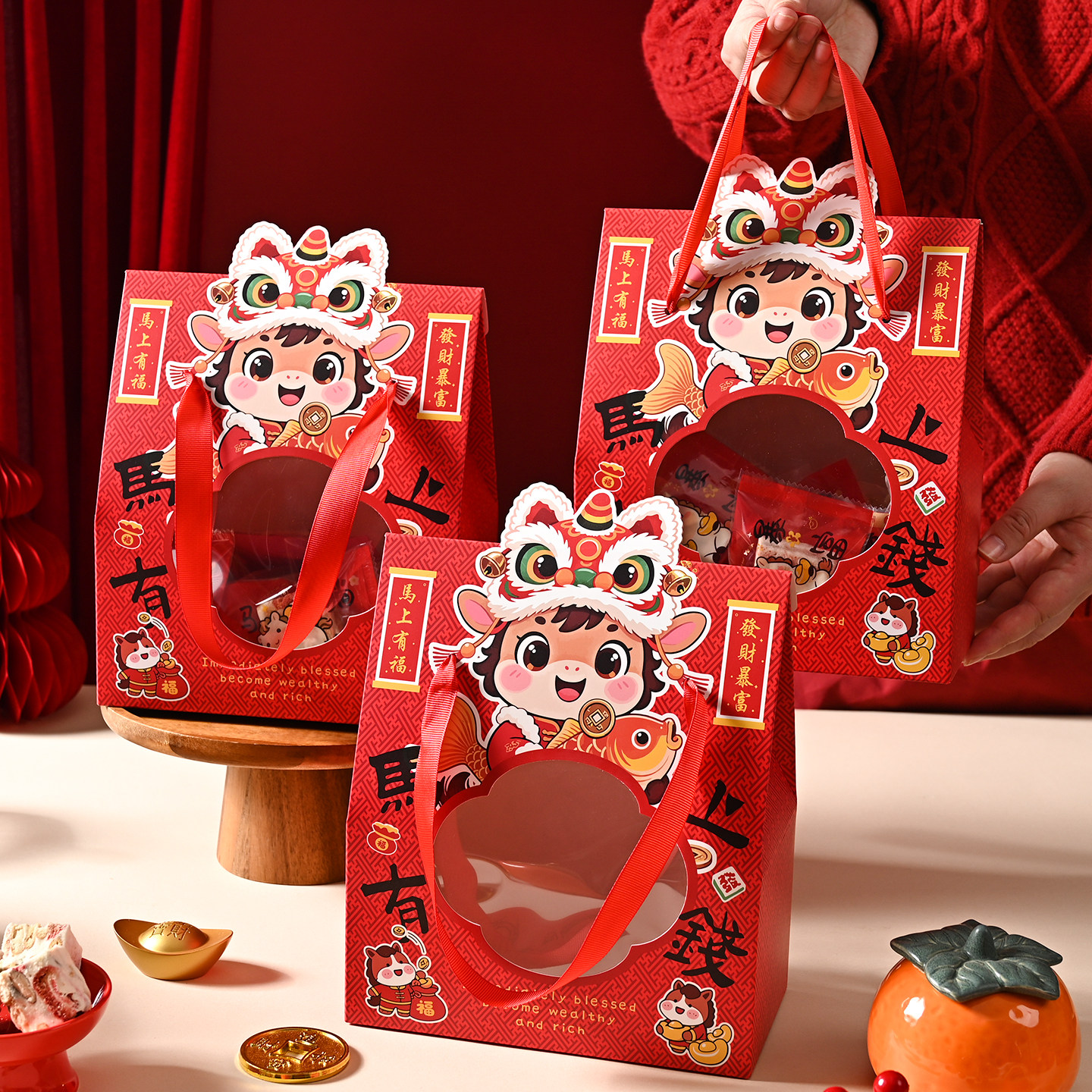 2026马年新年礼盒包装盒烘焙雪花酥饼干糖果太妃糖空盒手提礼品袋