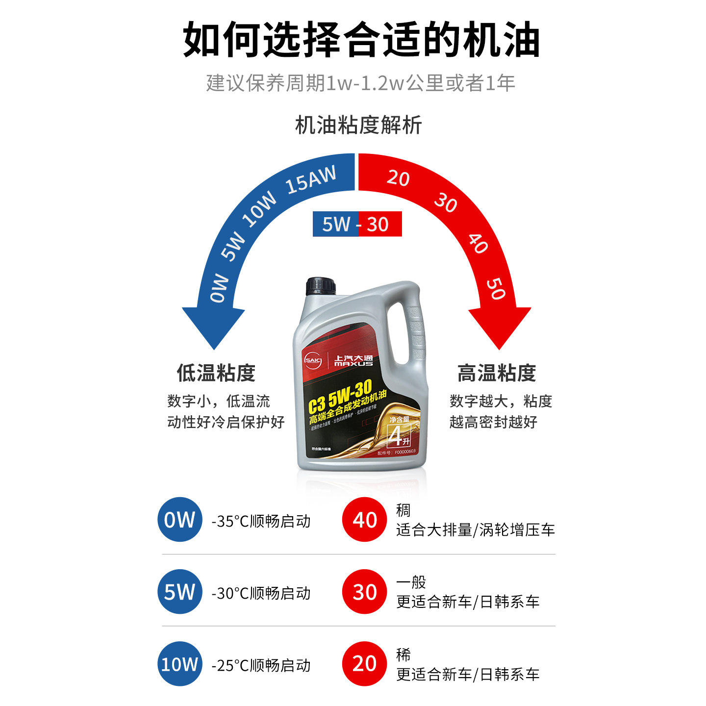 上汽大通V80V90G10G20T70T90D90 国六全合成柴汽油发动机润滑机油