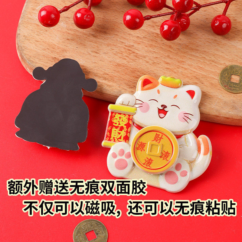 财神转钱冰箱贴元宝可转招财纳福摆件饰品喜庆装饰贴招财猫冰箱贴