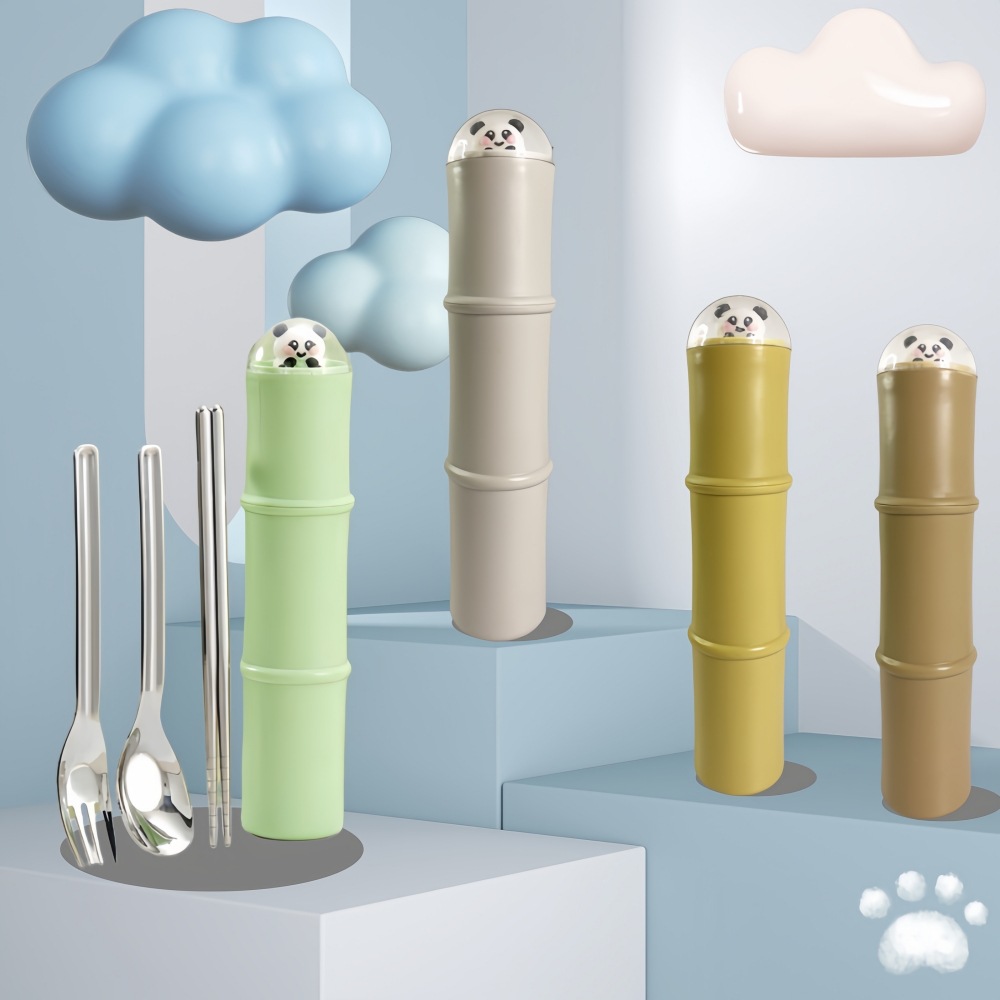创意竹节熊猫便捷餐具套装304筷子餐叉餐勺学生上班族餐具收纳盒