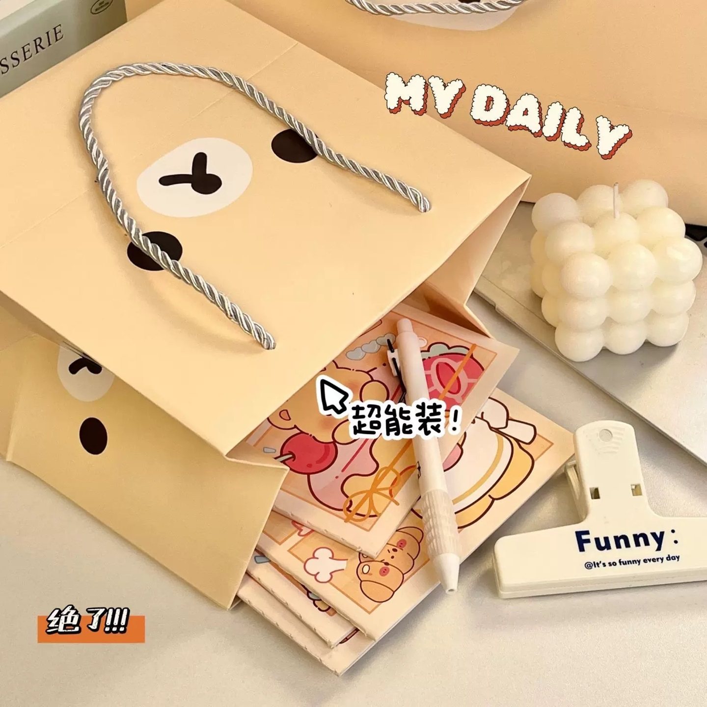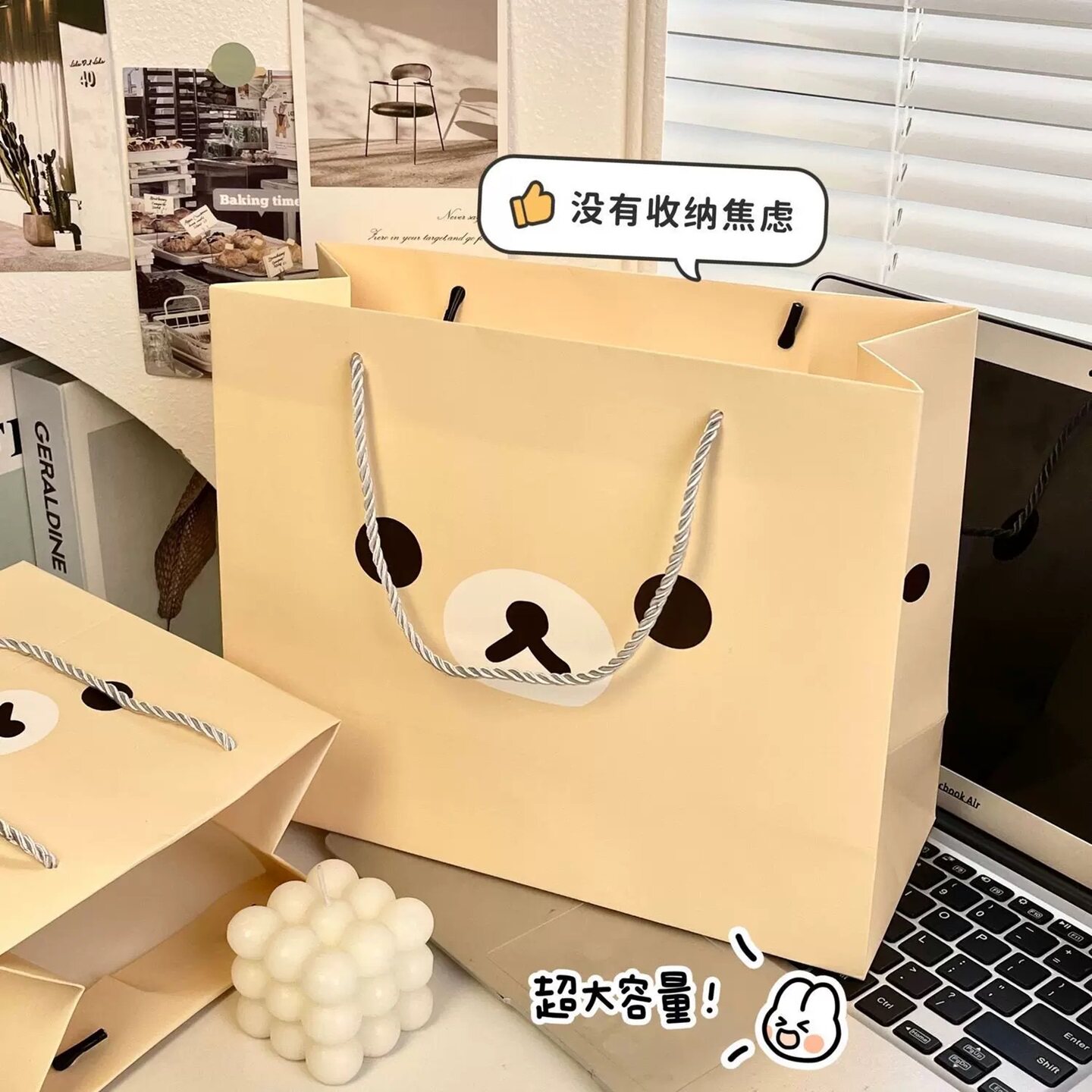 小红书同款轻松熊手提纸袋高颜值礼物包装袋可爱卡通ins风礼品袋