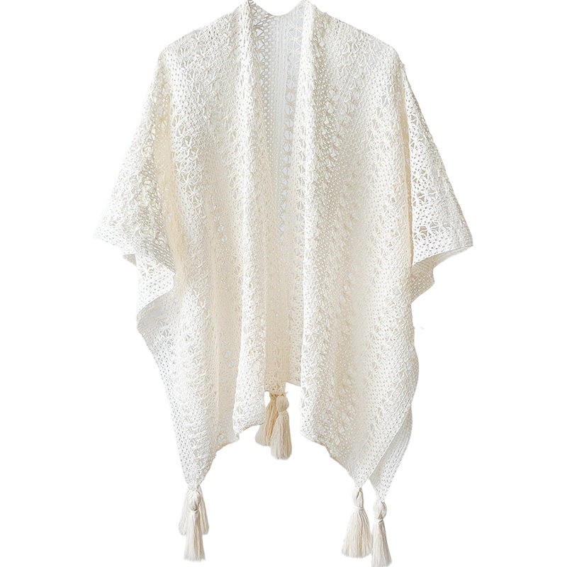 森系白色镂空针织披肩女2025新款春秋民族风拍照外搭披风斗篷外套
