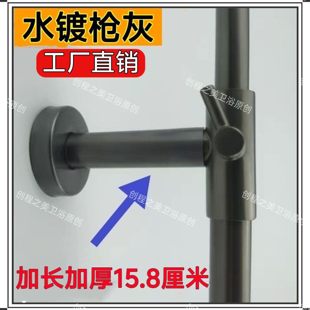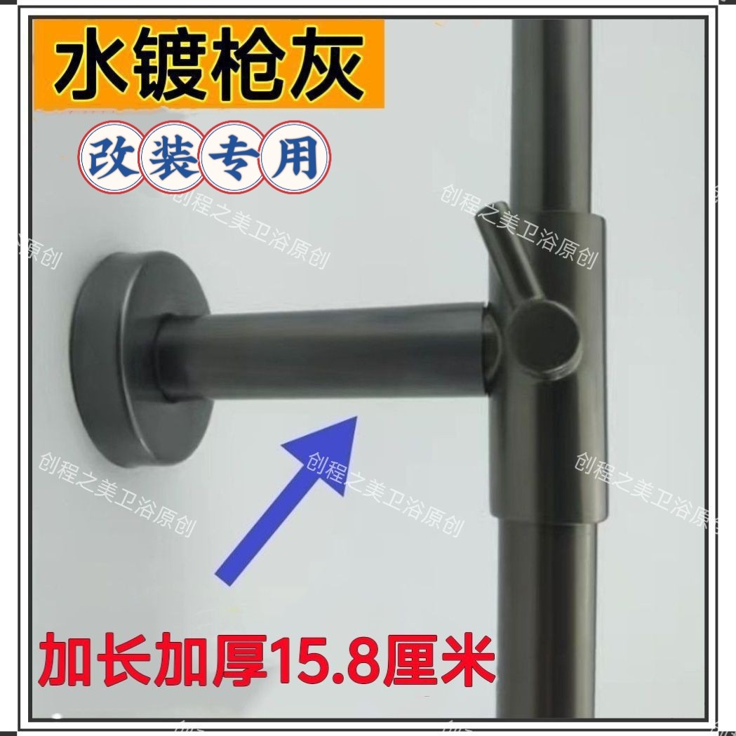3免打孔枪灰水镀墙座加长固定座不锈钢固定墙座花洒支架加厚杆