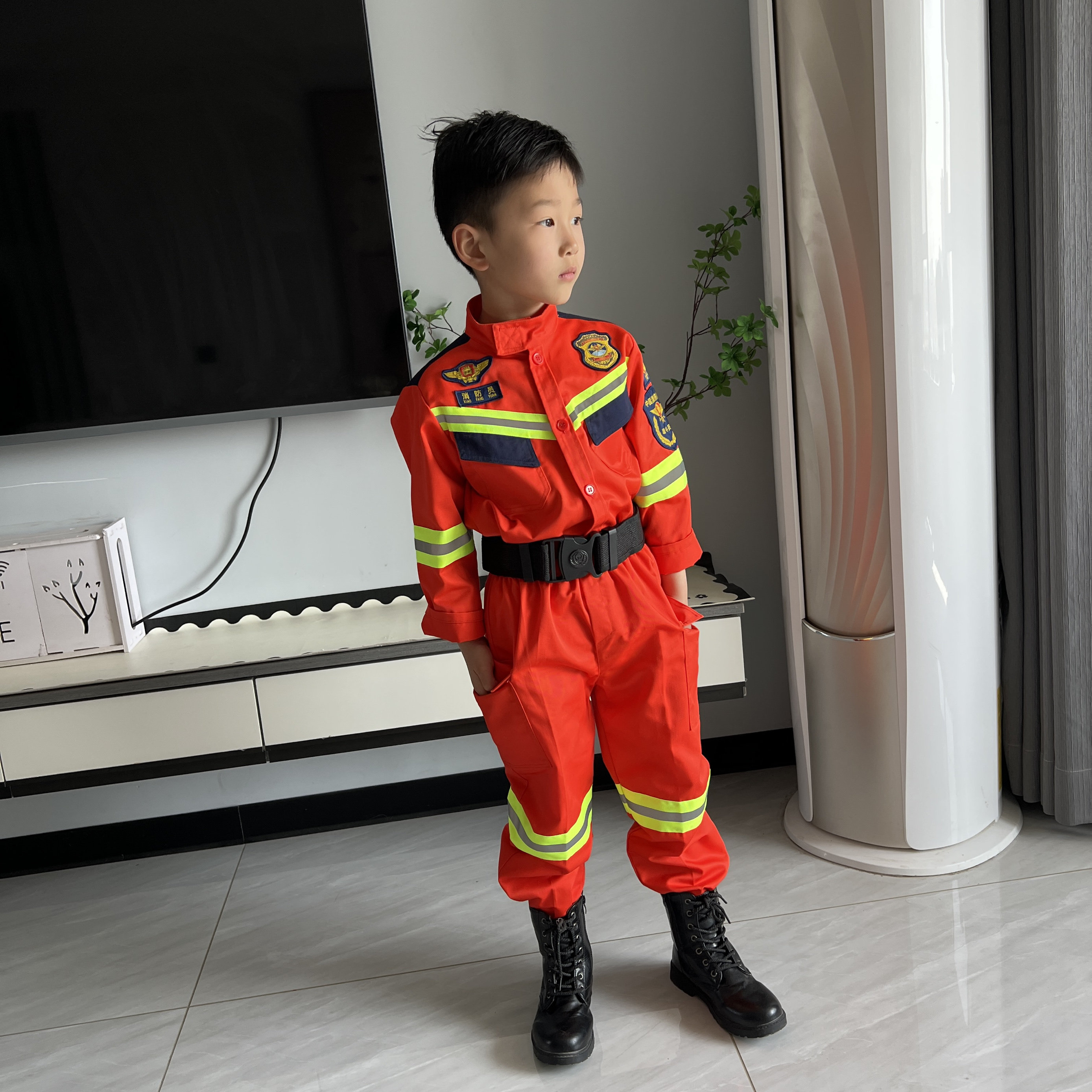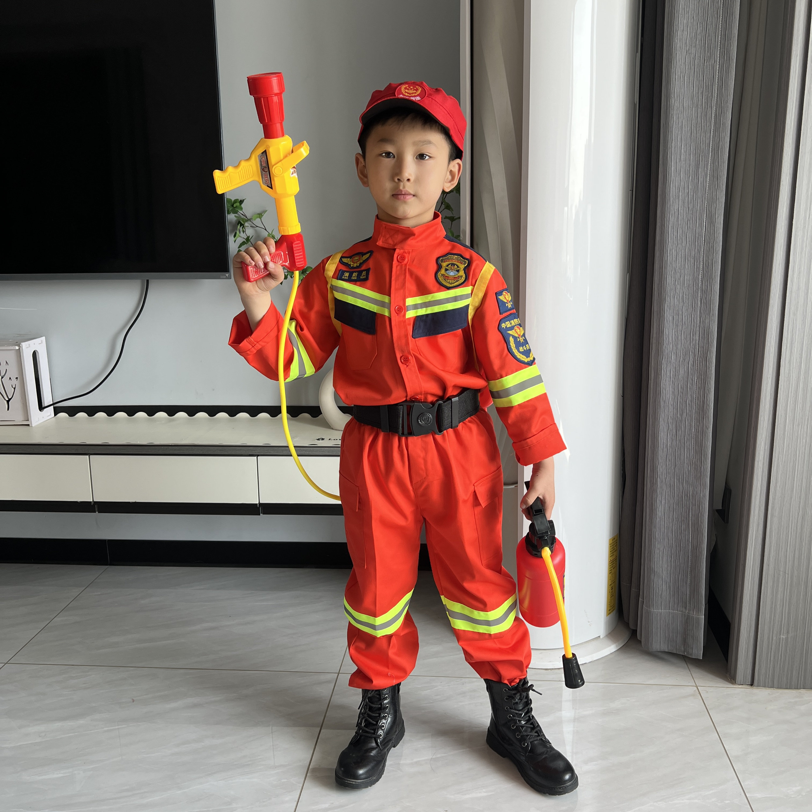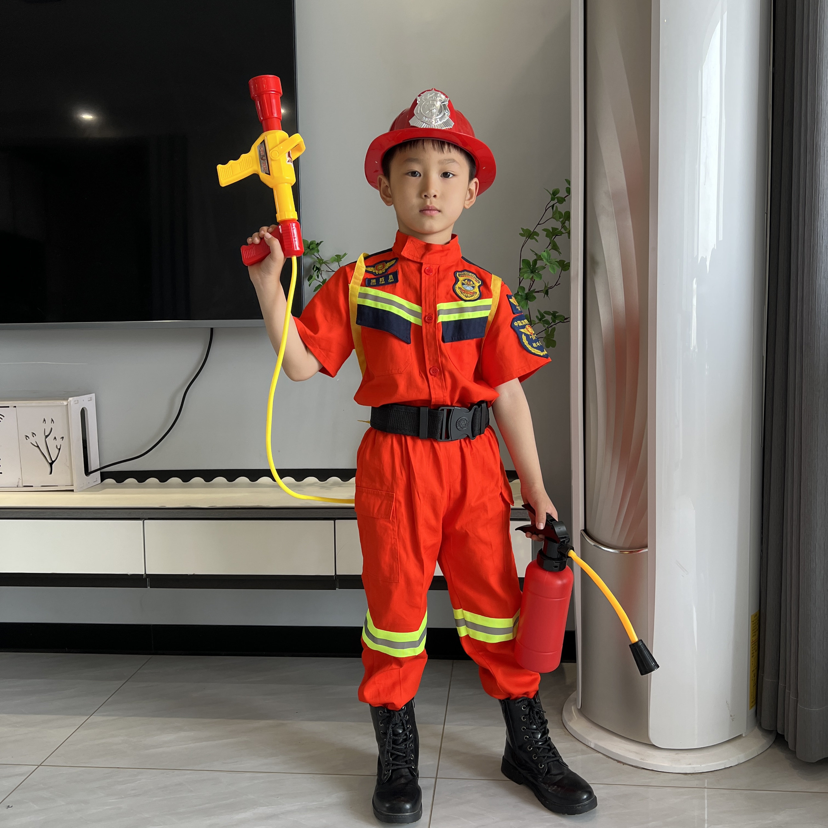 新款儿童消防员服装抢险救援服战斗服中国消防夏季水枪灭火器玩具