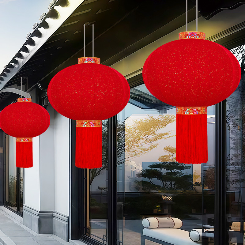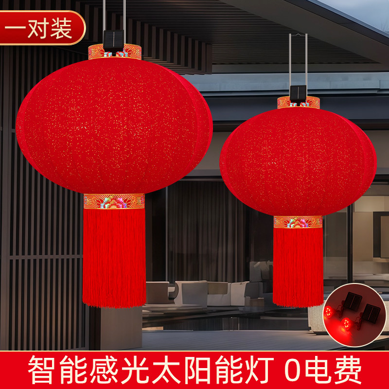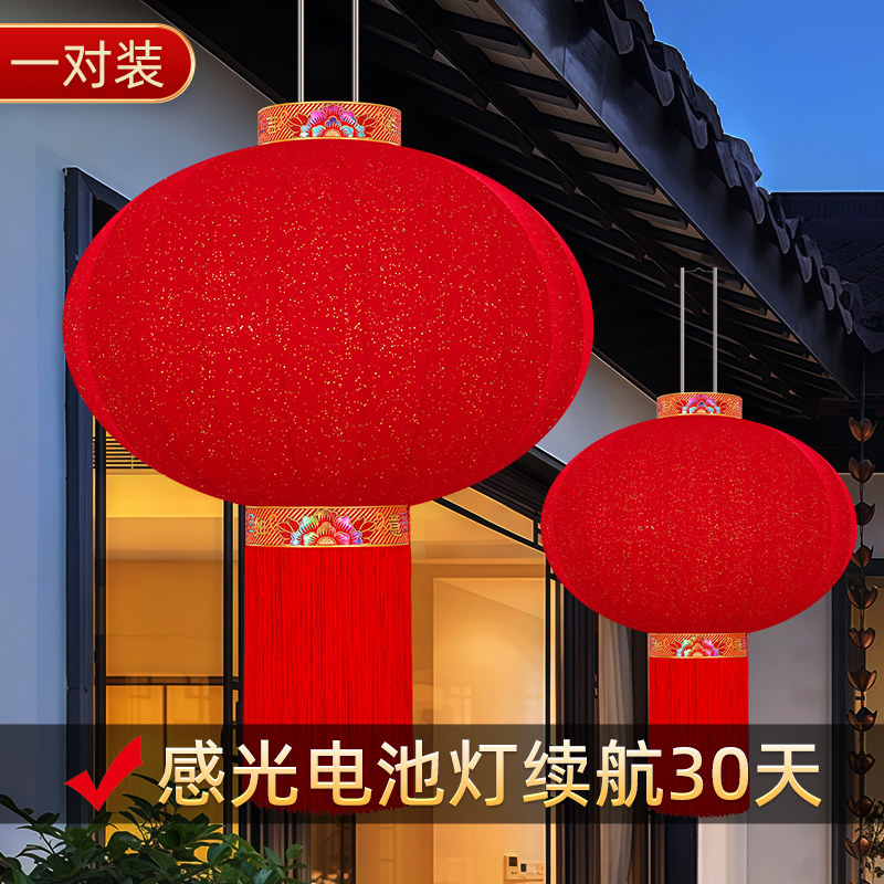2026新款绒布防水全红满天星灯笼阳台别墅过年春节大门口一对装
