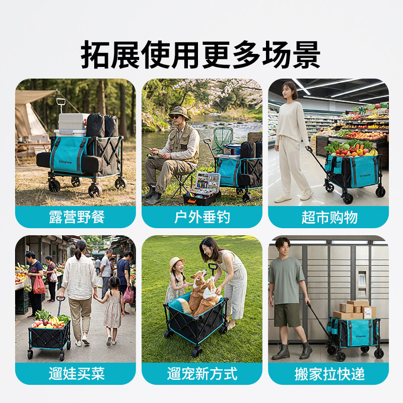 KingCamp户外营地车手推车便携式露营野餐买菜多功能小拉车