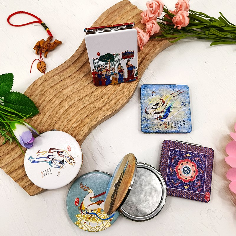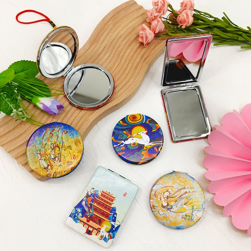 敦煌文化创意化妆镜平镜随身小镜子莫高窟飞天圆形双面旅游伴手礼