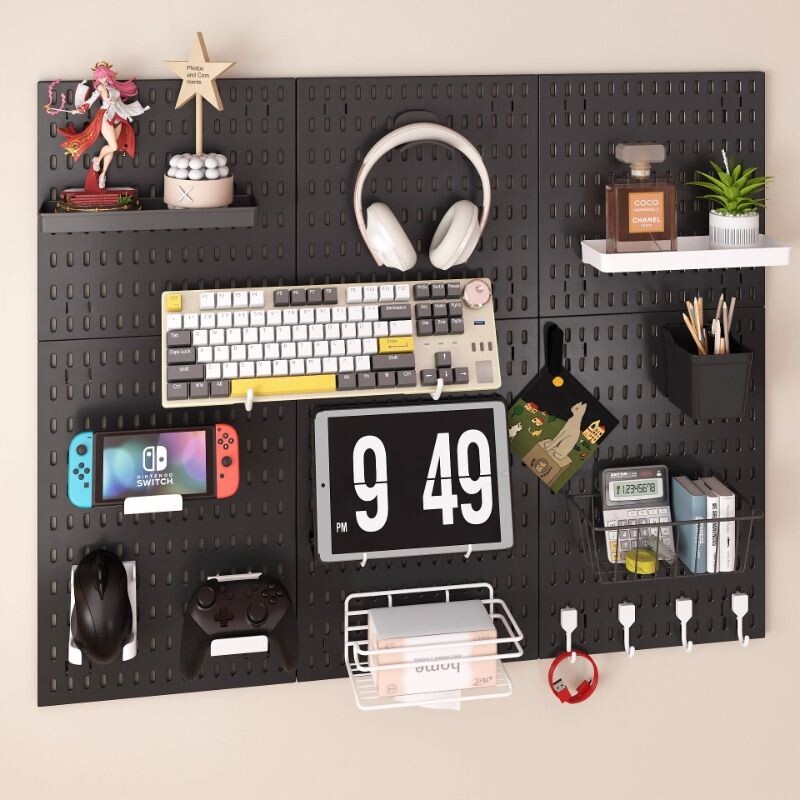 免打孔洞洞板置物架书电竞房悬挂式收纳神器书桌网吧墙上整理架