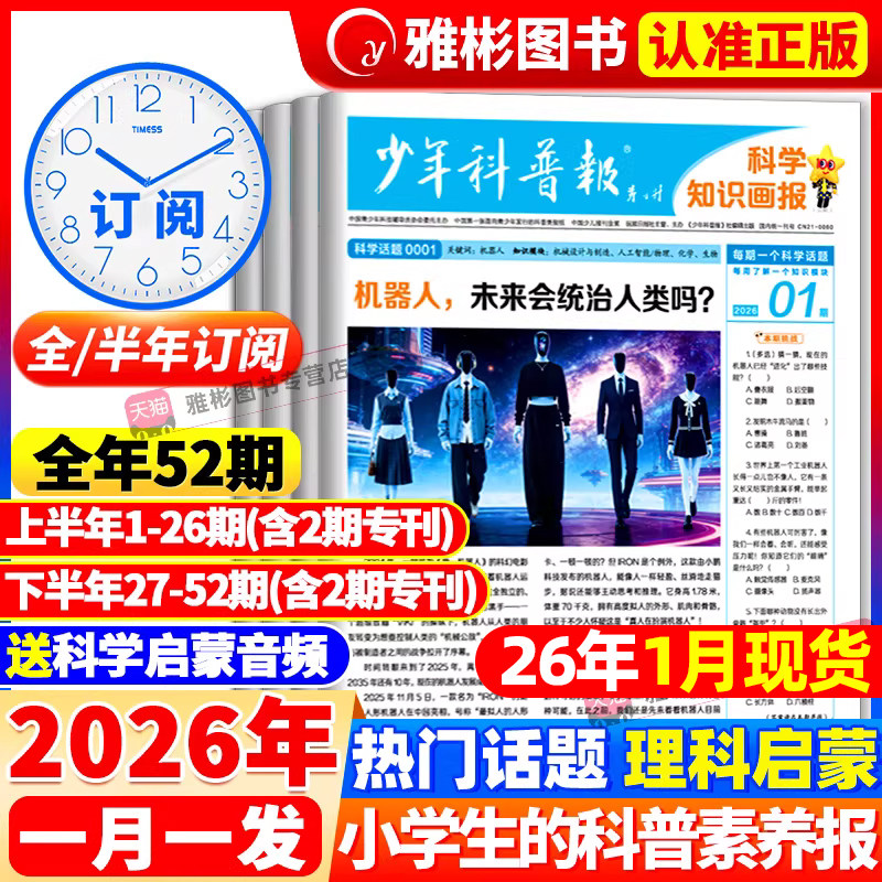 1月现货【全年/半年订阅】少年科普报杂志科学知识画报2026年1-12月春季/秋季学期8-15岁小学生百科素养报纸大语文天星教育非过刊