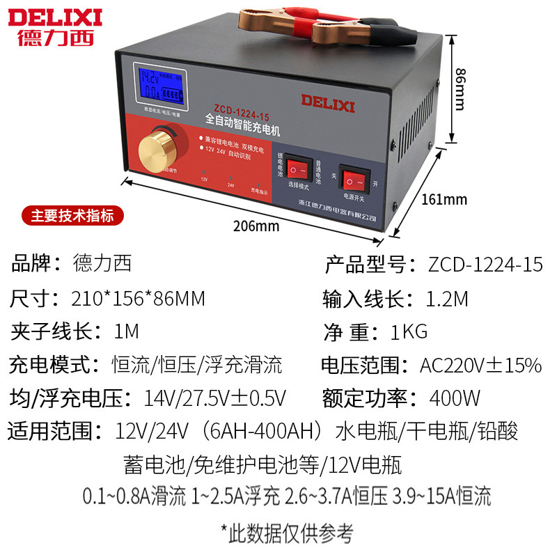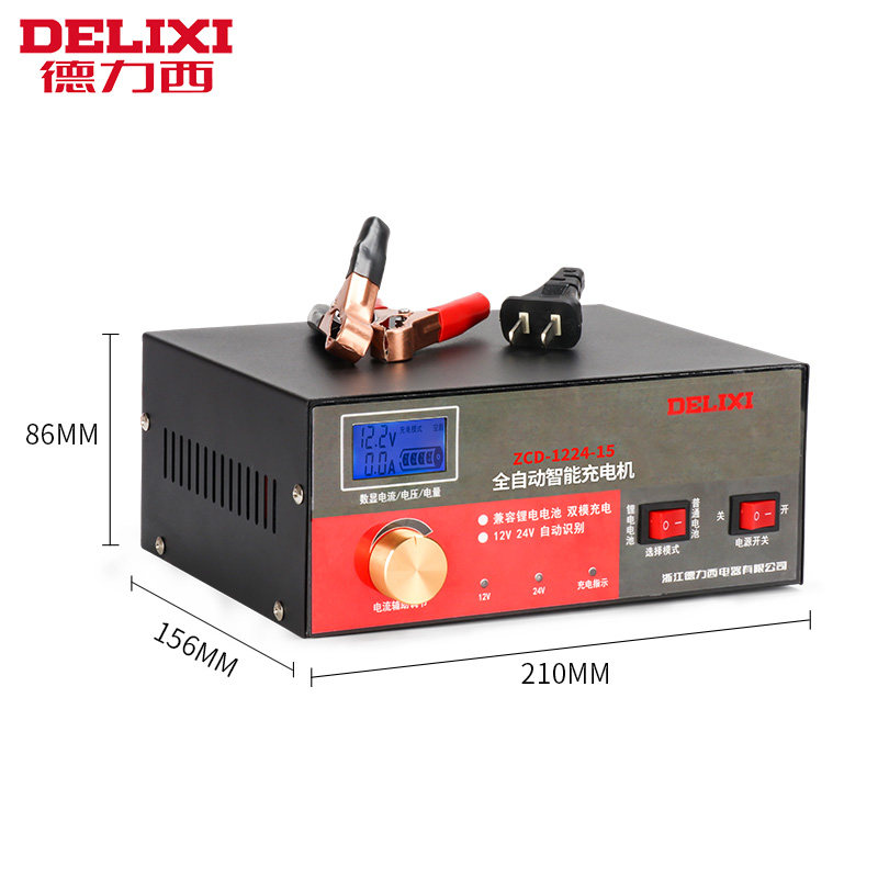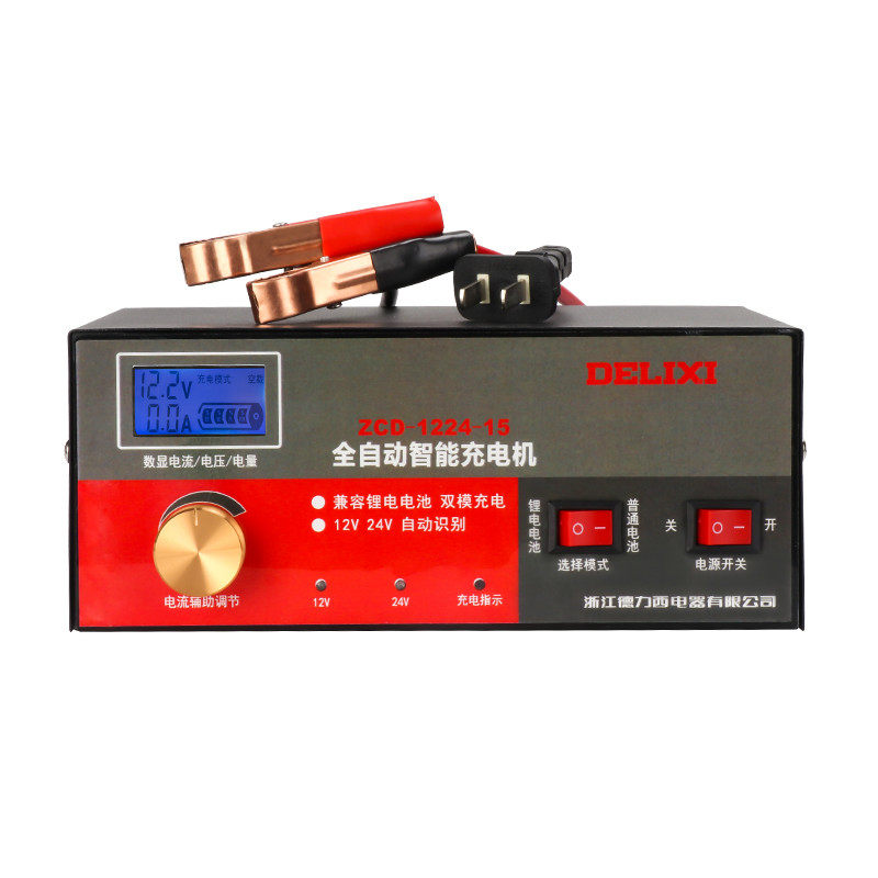 德力西自动大功率电瓶汽车摩托车充电器水电瓶12v24v蓄电池修复充