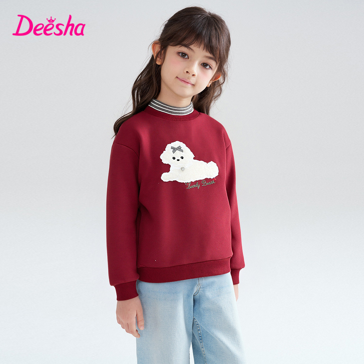 笛莎官方童装女童卫衣冬季新款大童女孩儿童洋气套头绒衫上衣