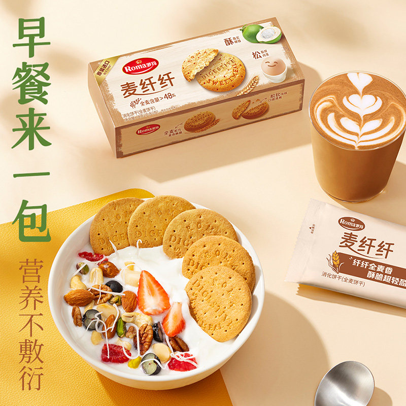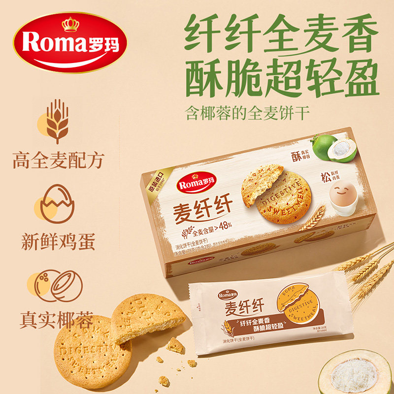 Roma罗玛麦纤纤全麦饼干早餐酥性饼干休闲零食含真实椰蓉独立包装