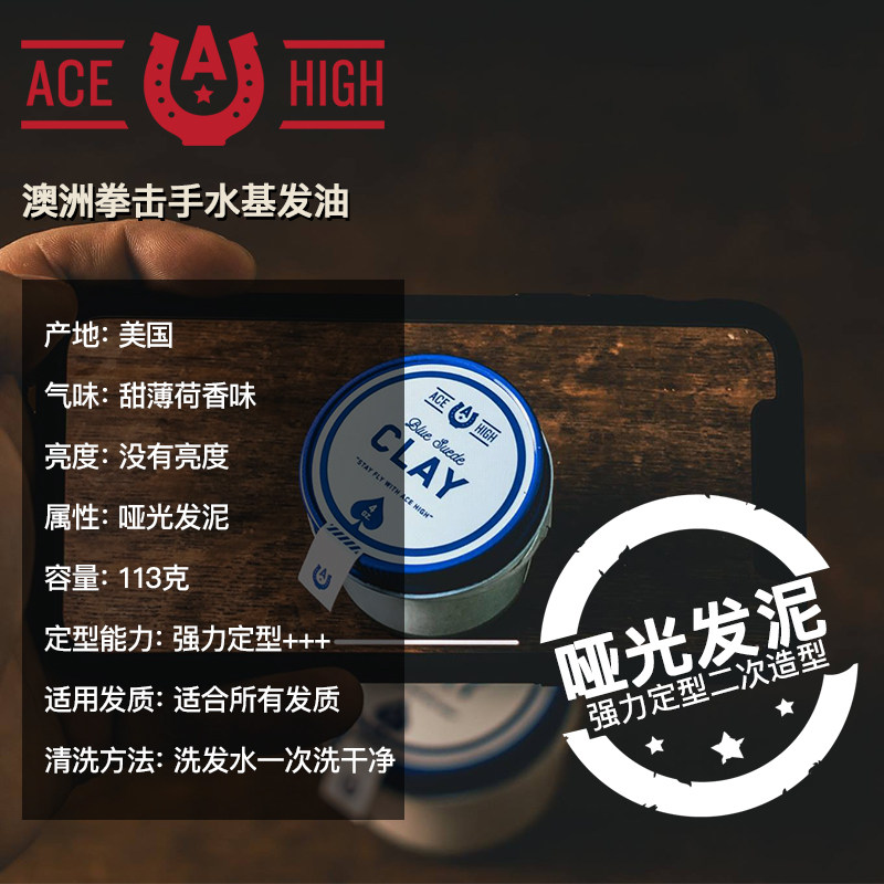 ACE CLAY 发油发蜡发泥男士无味水基定型清香自然蓬松极度哑光